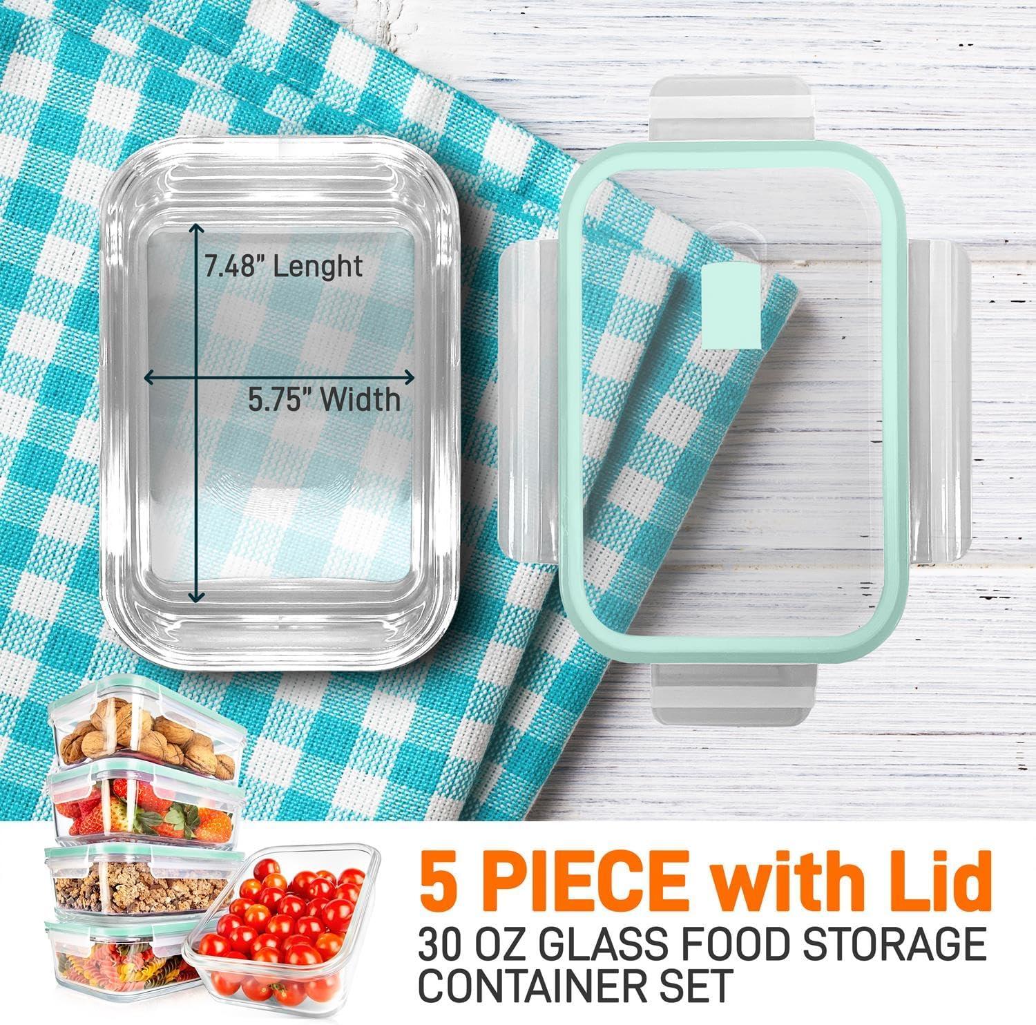 Features: – Container with Clear Locking Lid & Red Air Hole – 100% Leak Proof Glass Meal Prep Containers – Great on-the-go & Freezer to Oven Safe Food Containers – 5 Containers with 5 Lids of 30oz – Crafted of High Borosilicate Glass – Safe to Transfer from Freezer to Oven in Instants – Containers are Dishwasher Safe – Friendly to the Environment and Free of Chemicals – Easy to Clean and Store – Lids are Crafted of BPA Free Plastic – Newly Locking Lid with air hole design – Lid with Removable Gasket – Oven, Microwave, Freezer Safe – Stain and Odor Resistant – 4 Snap Airtight, Leak-proof Locking Lid What's in the Box: – (5) 30oz with lid Technical Specs: – Construction Material: High-Quality Glass – Container Style: Rectangle – Lid Style: Airtight Locking Lid with air hole – Capacity: 30 Oz – Temperature: 520? (Max) , -20?(Min) – 30 oz with Lid (L x W x H): 7.48'' x 5.75'' x 2.60'' -inches