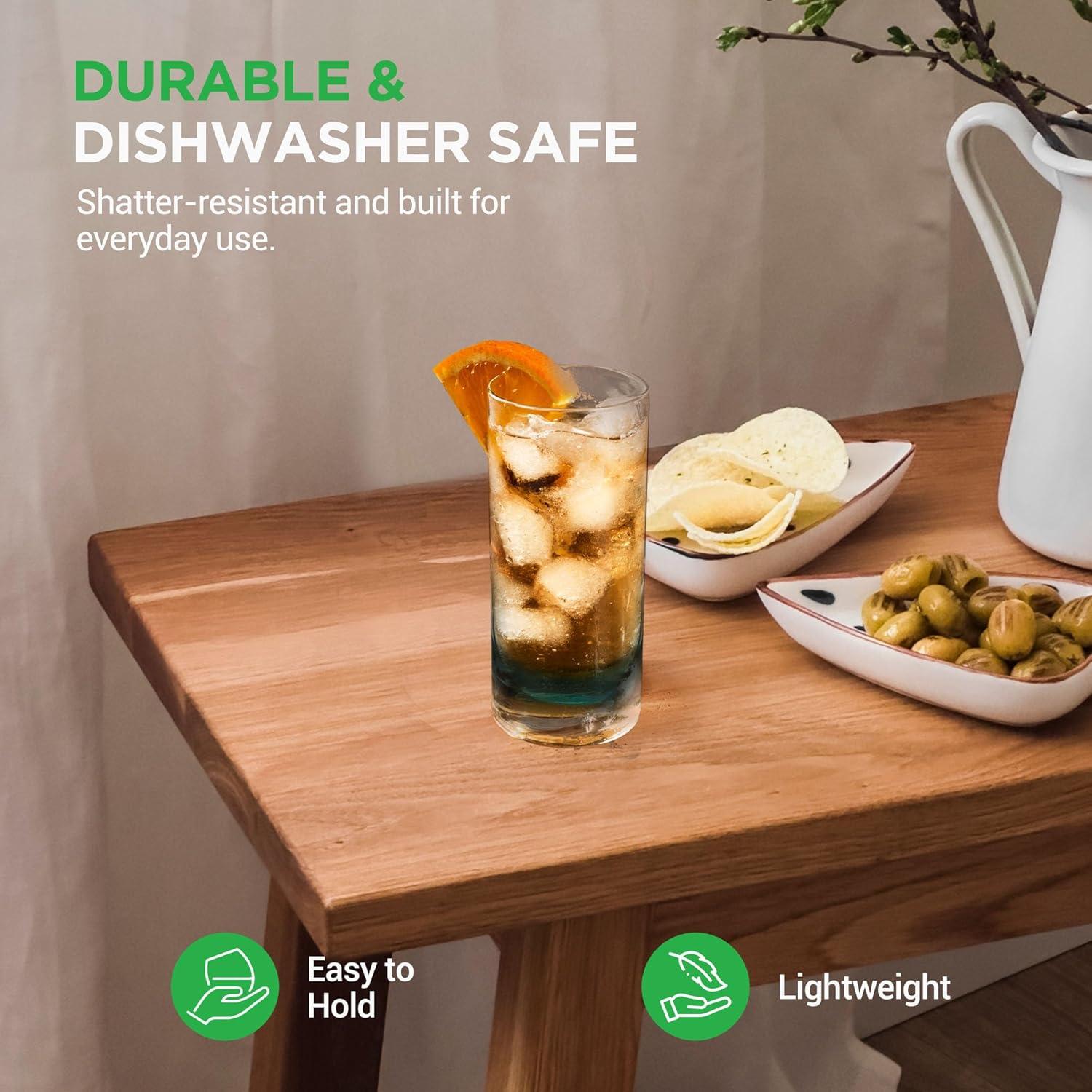 PREMIUM CRYSTAL GLASS: The Highball Drinking Glasses are made from durable lead-free premium crystal glass making it chip-resistant w/ normal use. Not too thick to help preserve the quality & flavor of your wine yet strong enough to stand daily use