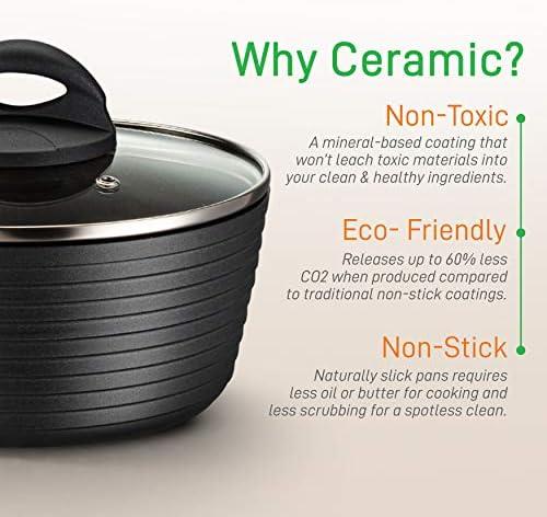 COMPATIBLE WITH INDUCTION: Suitable for use on gas, electric, ceramic and induction stoves. Made with a coating, multilayer- Includes heat-resistant silicone utensils.