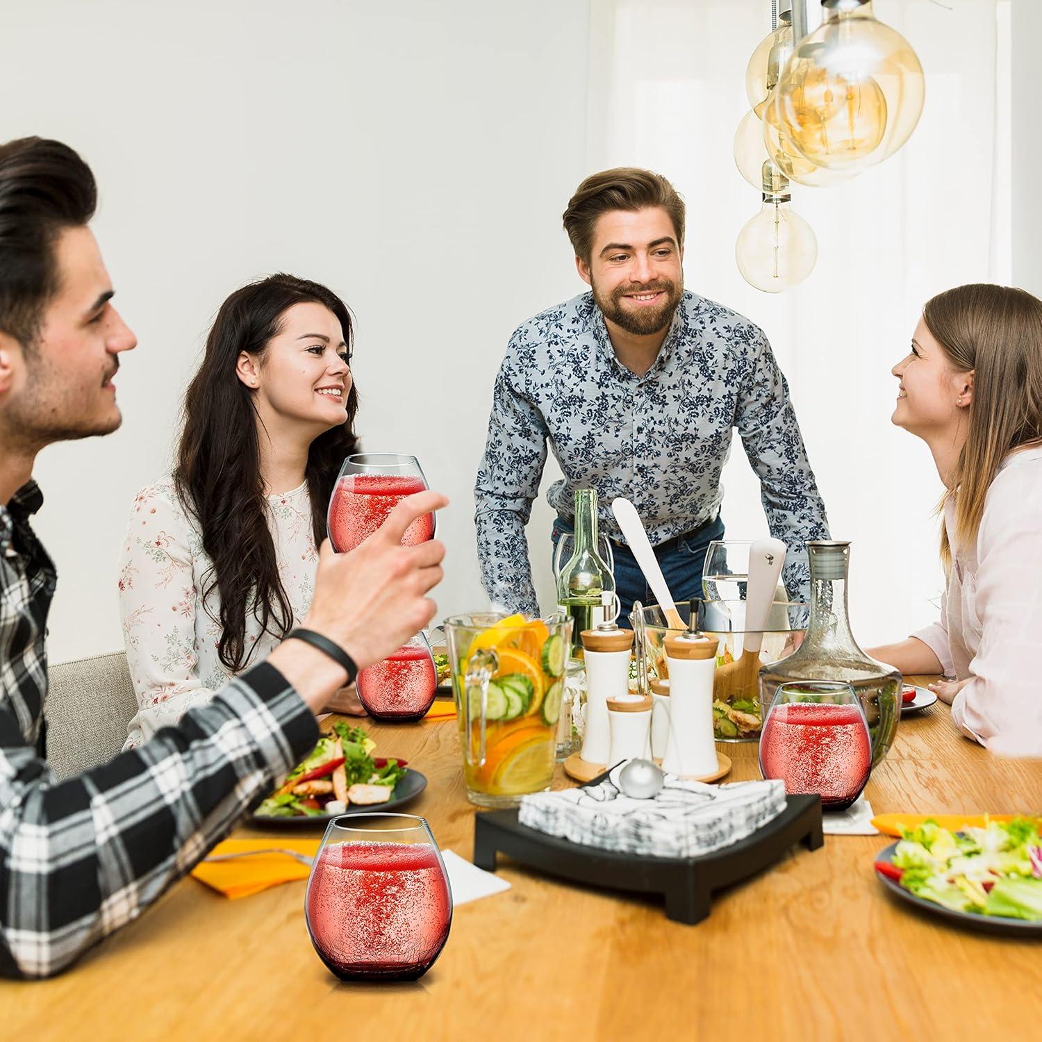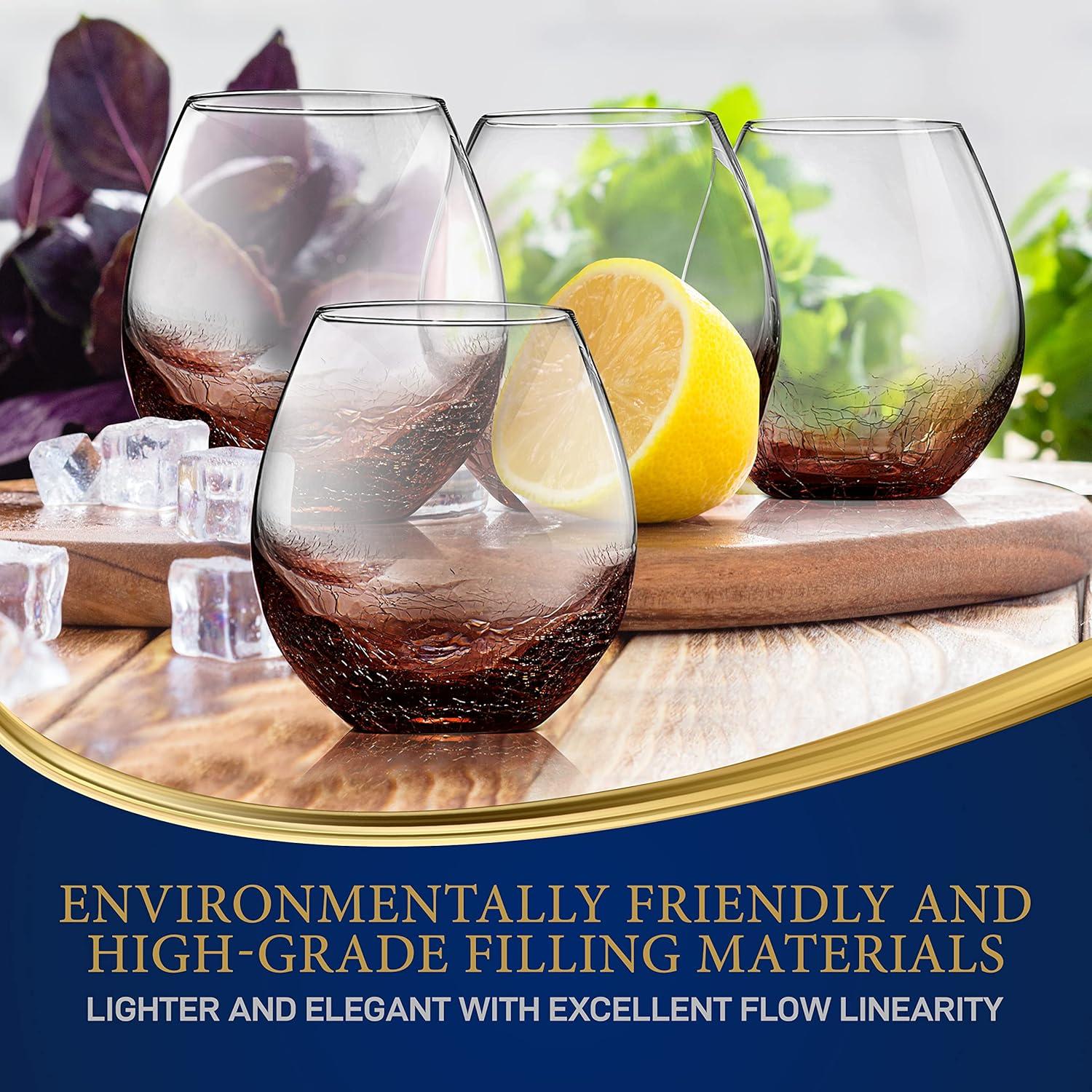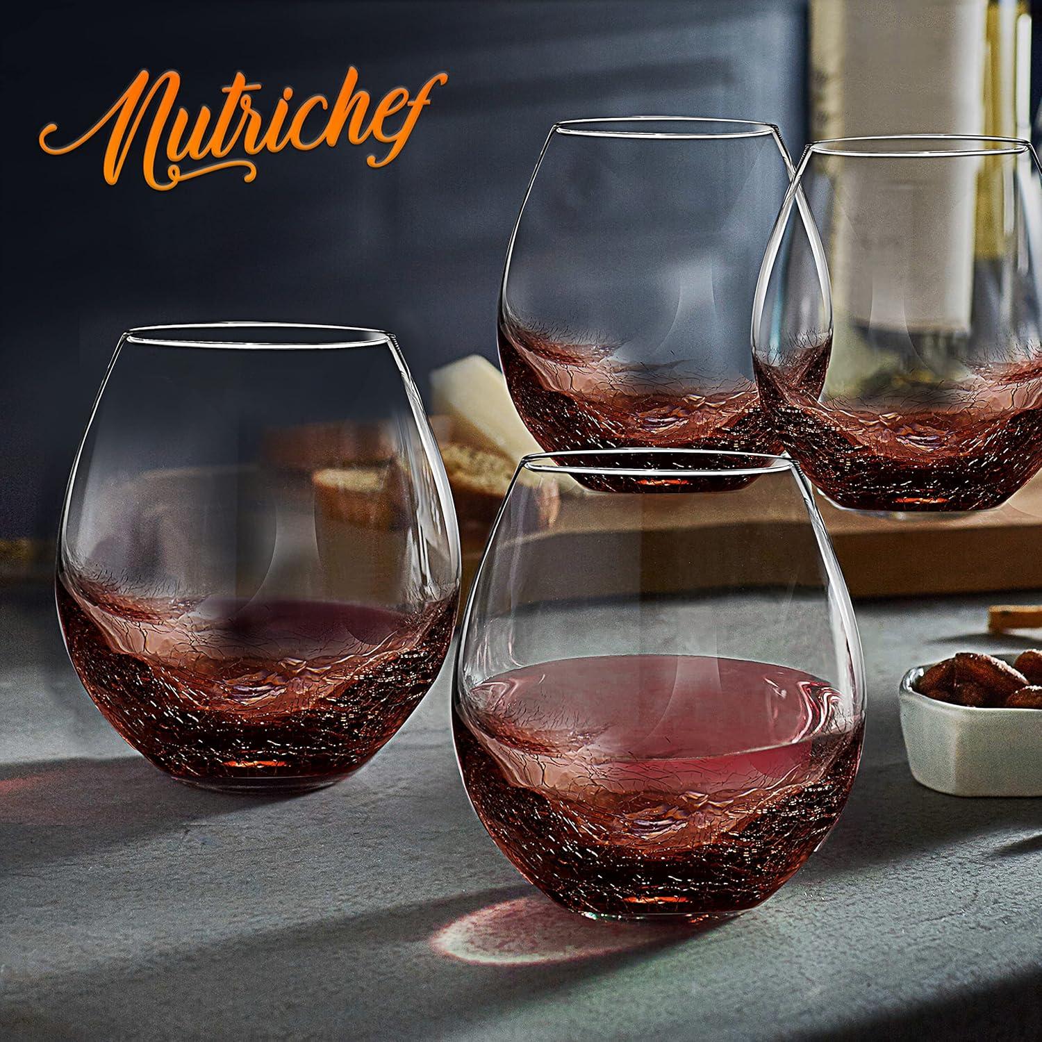 imageNutriChef 19 Ounce Stemless Wine Glasses For Red or White Wine Set of 4 For Party And Gifting Clear LeadFree and Ice Crack Design4 Glasses