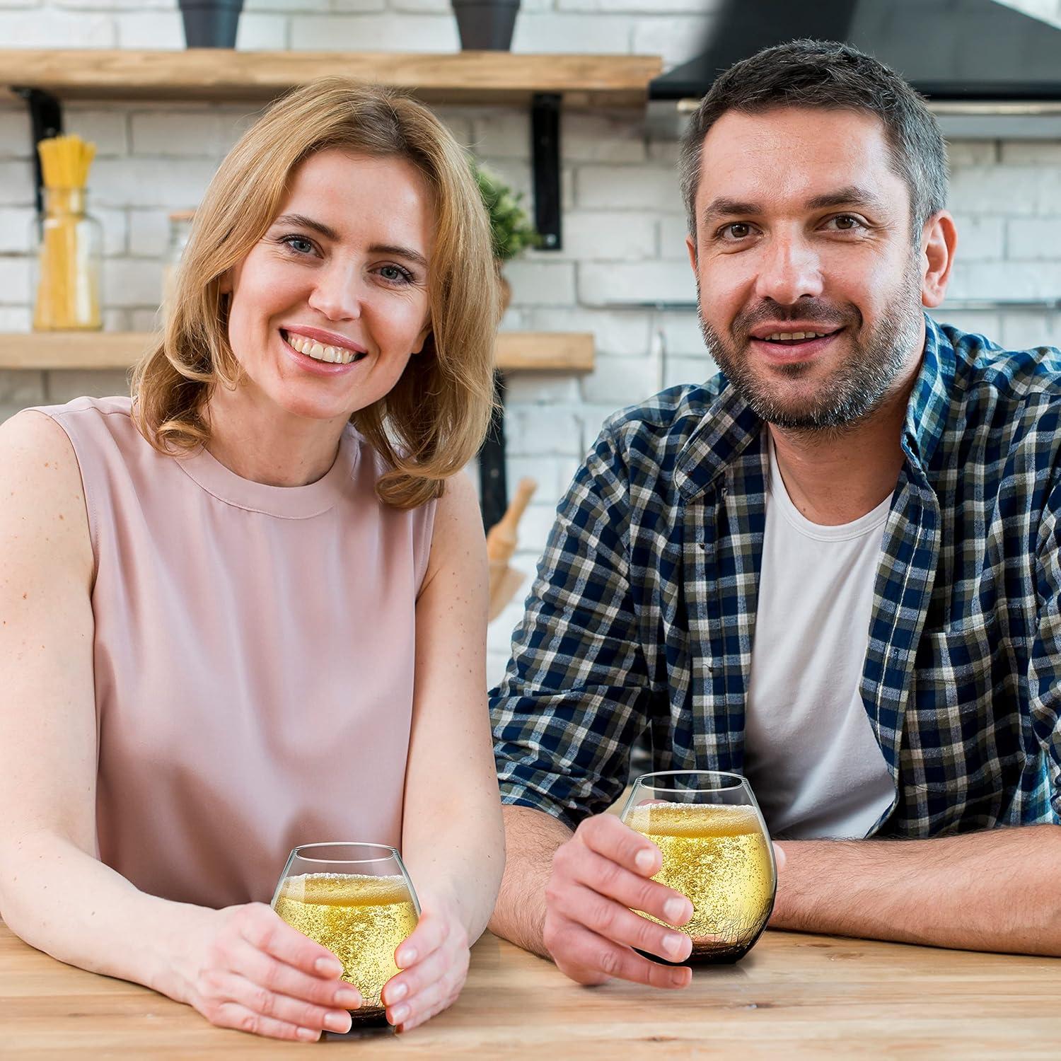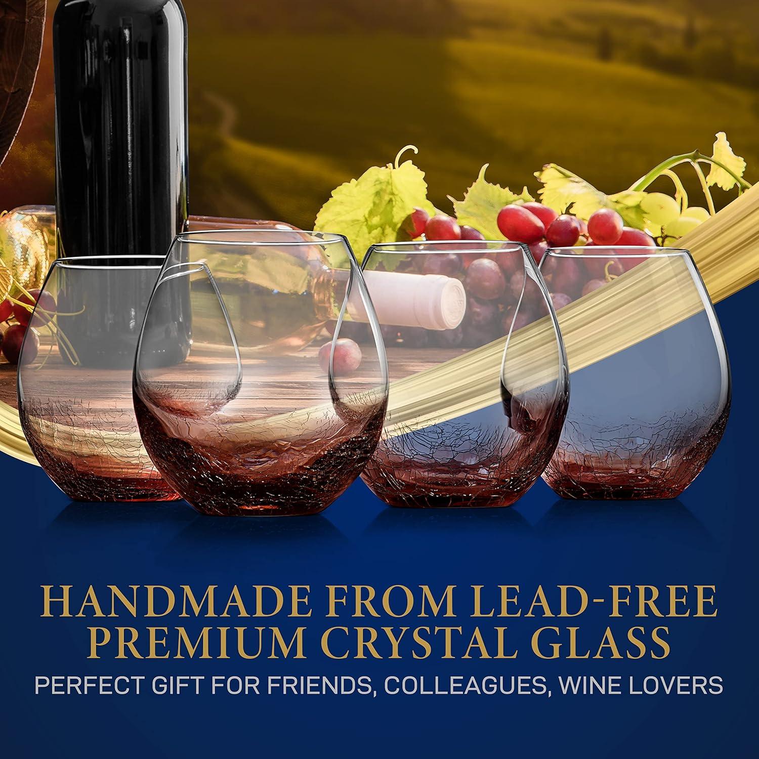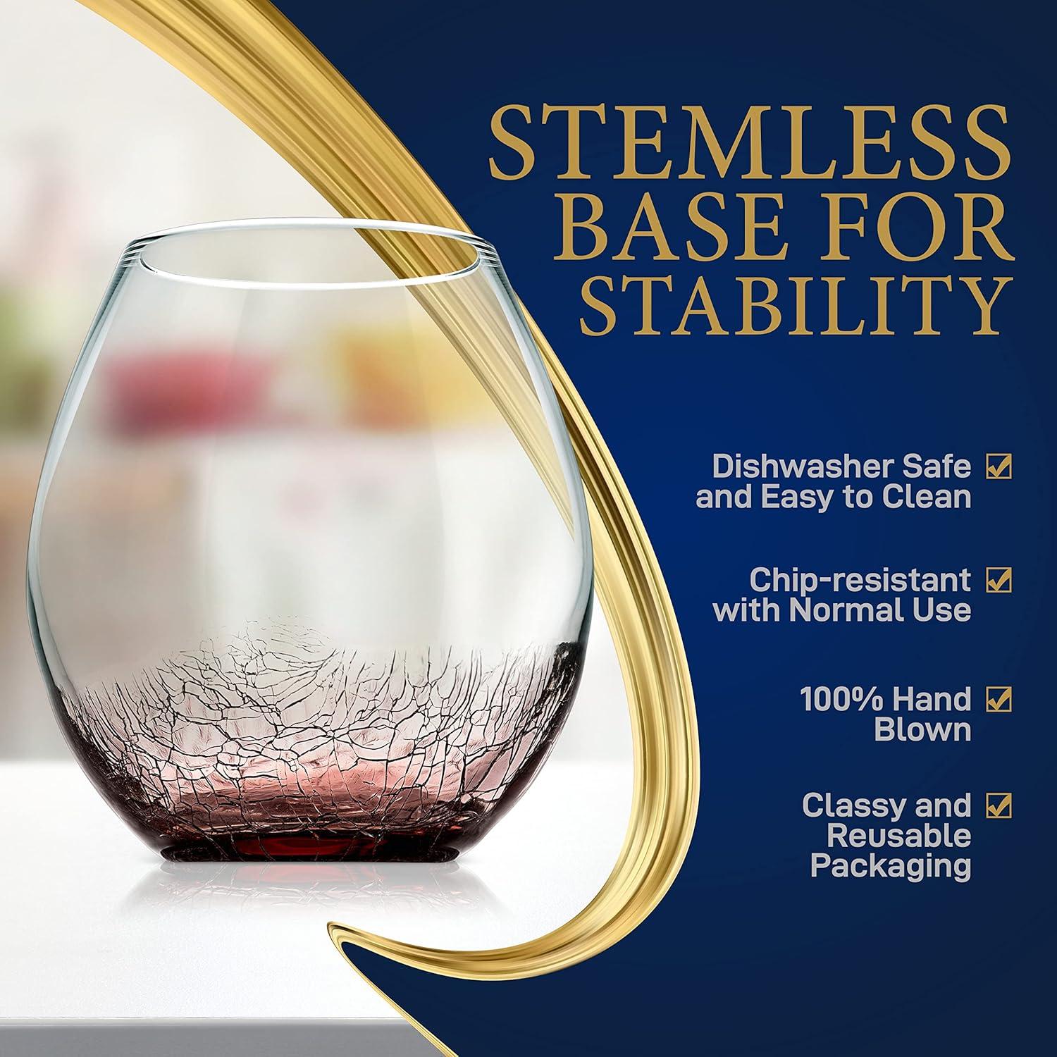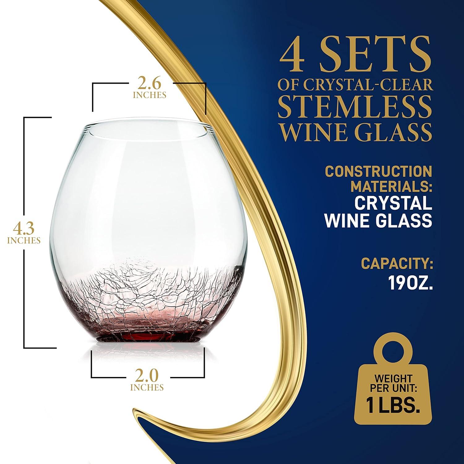 NutriChef 19 Ounce Stemless Wine Glasses For Red or White Wine (Set of 4) For Party And Gifting Clear, Lead-Free, and Ice Crack Design(4 Glasses)