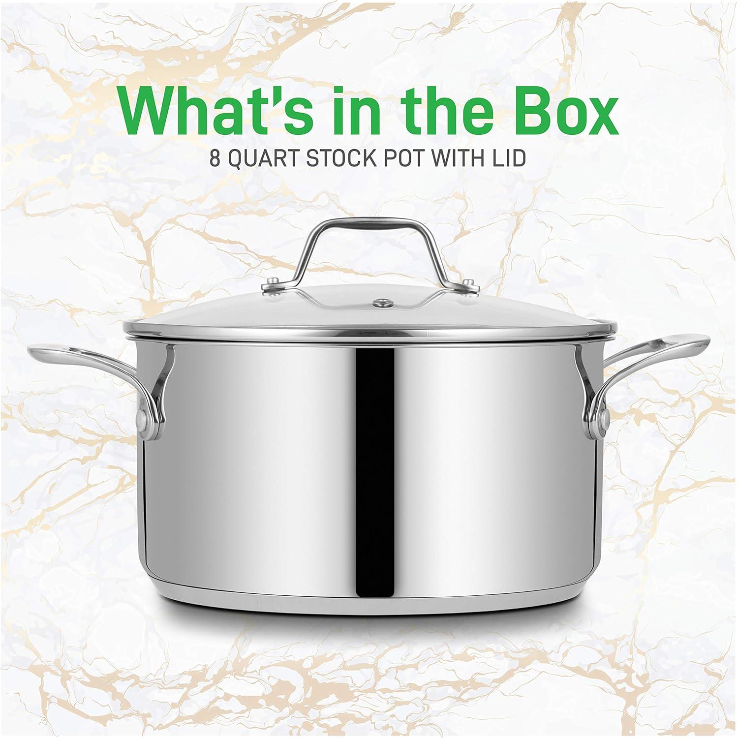 INDUCTION READY: The heavy duty stainless steel stock pot is designed for safe use in electric, gas, induction, ceramic, hot plate & halogen cook tops. Though dishwasher safe, hand washing is highly recommended to preserve the stainless steel shine