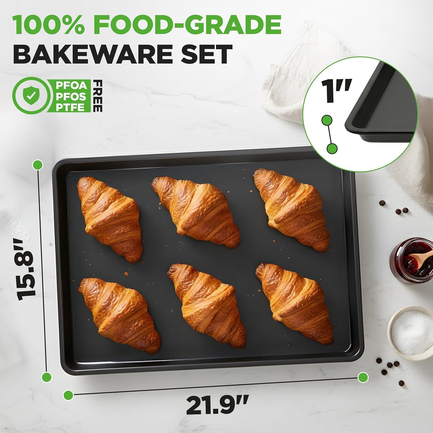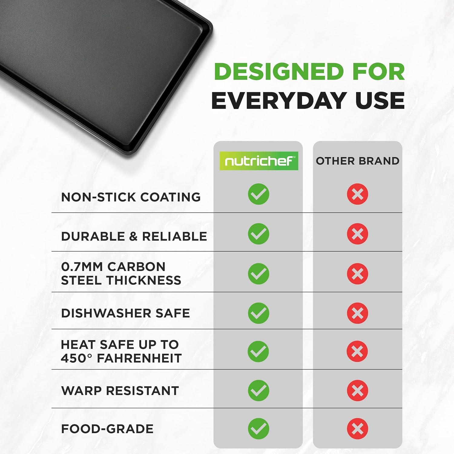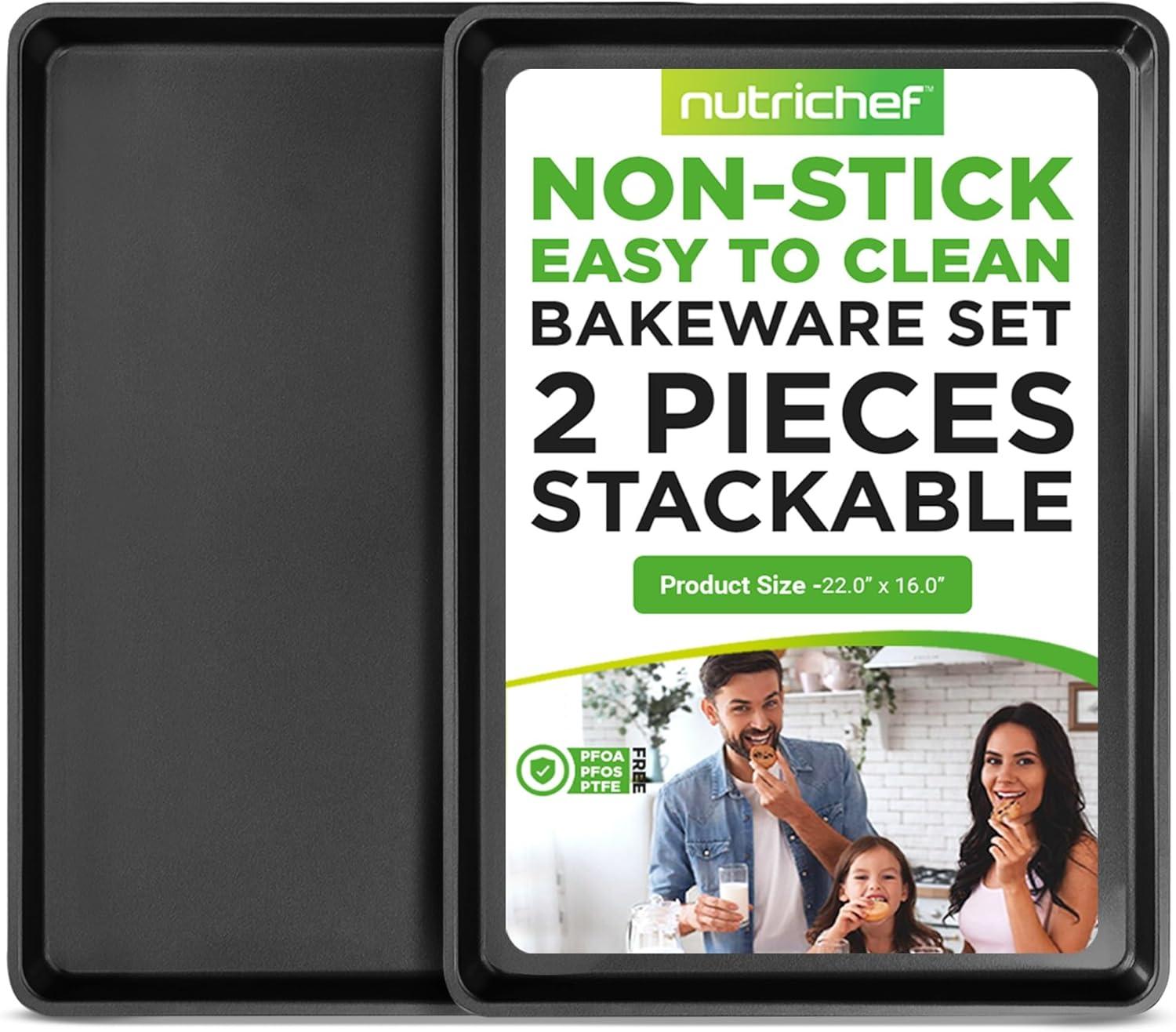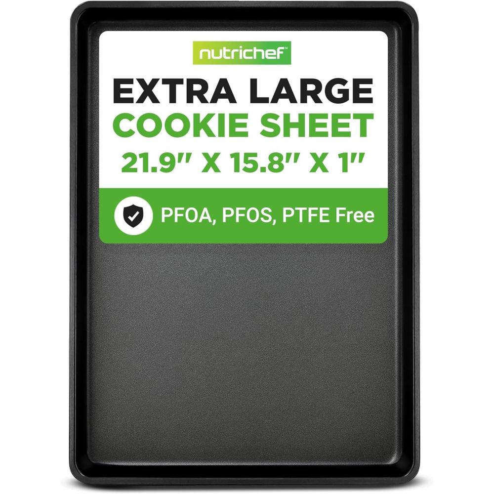 NON-STICK COATING: The large cooking sheet pan features a non-stick coated layer surface that ensures quick, effortless food release and eliminates the need for butter, oil, or cooking spray. Makes tasty homemade baked goods slide out easily