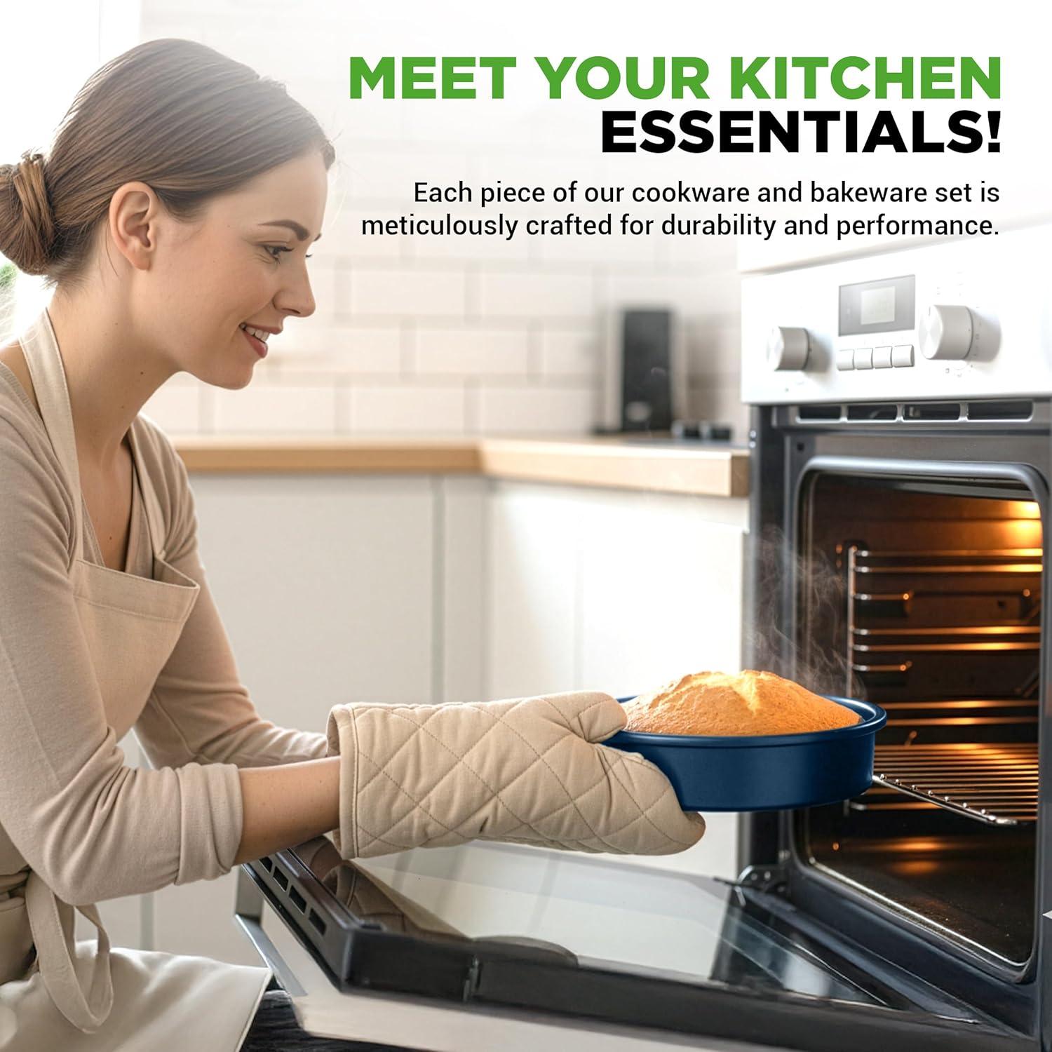 Nutrichef 20 Piece Professional Home Kitchen Cookware and Bakeware, Pots and Pans Set Non Stick Kitchenware, Cool-Touch Handles, Non Toxic, Safe for Gas, Electric, Induction Cooktops, Easy Clean(Navy)