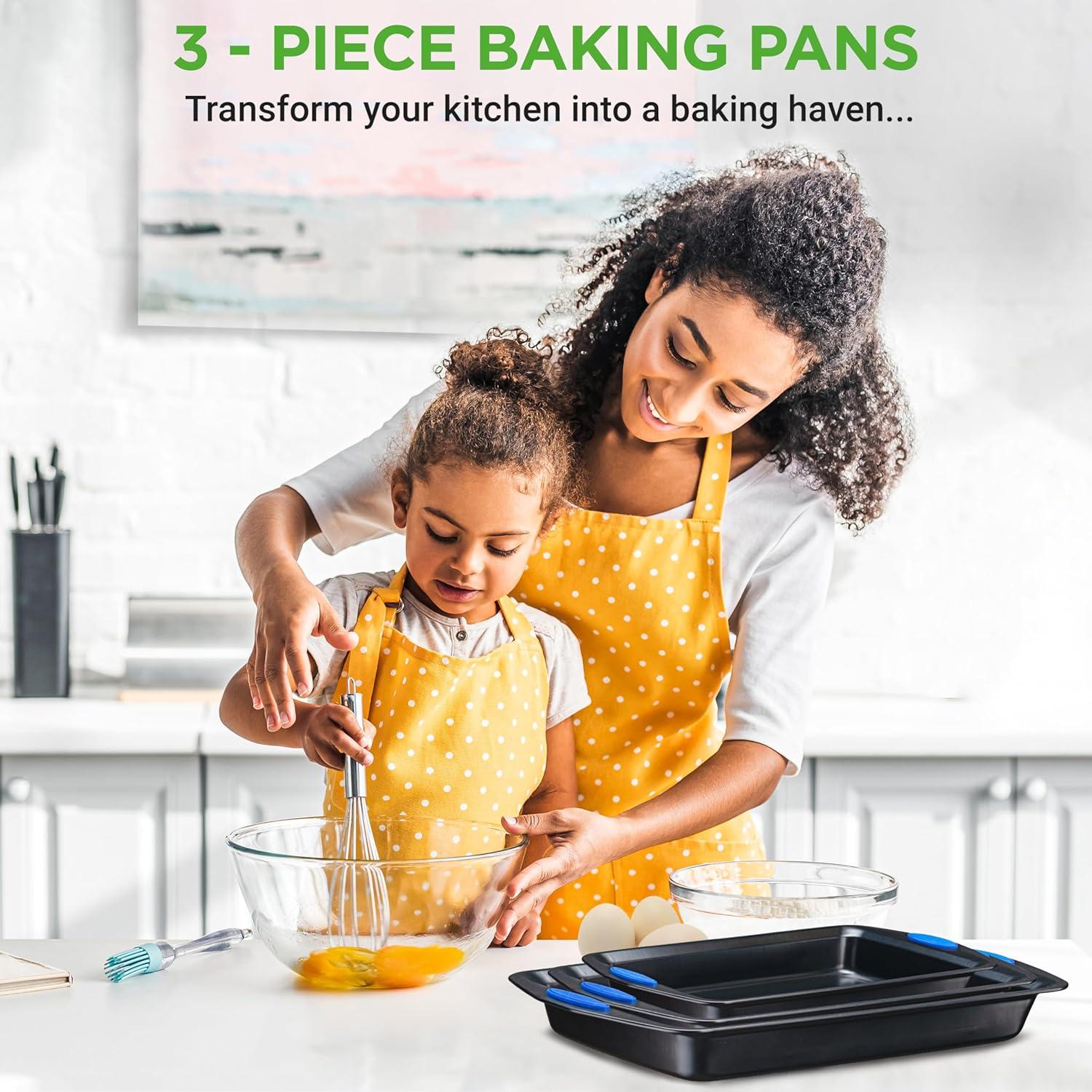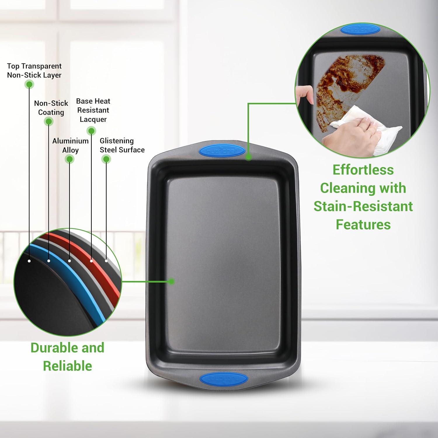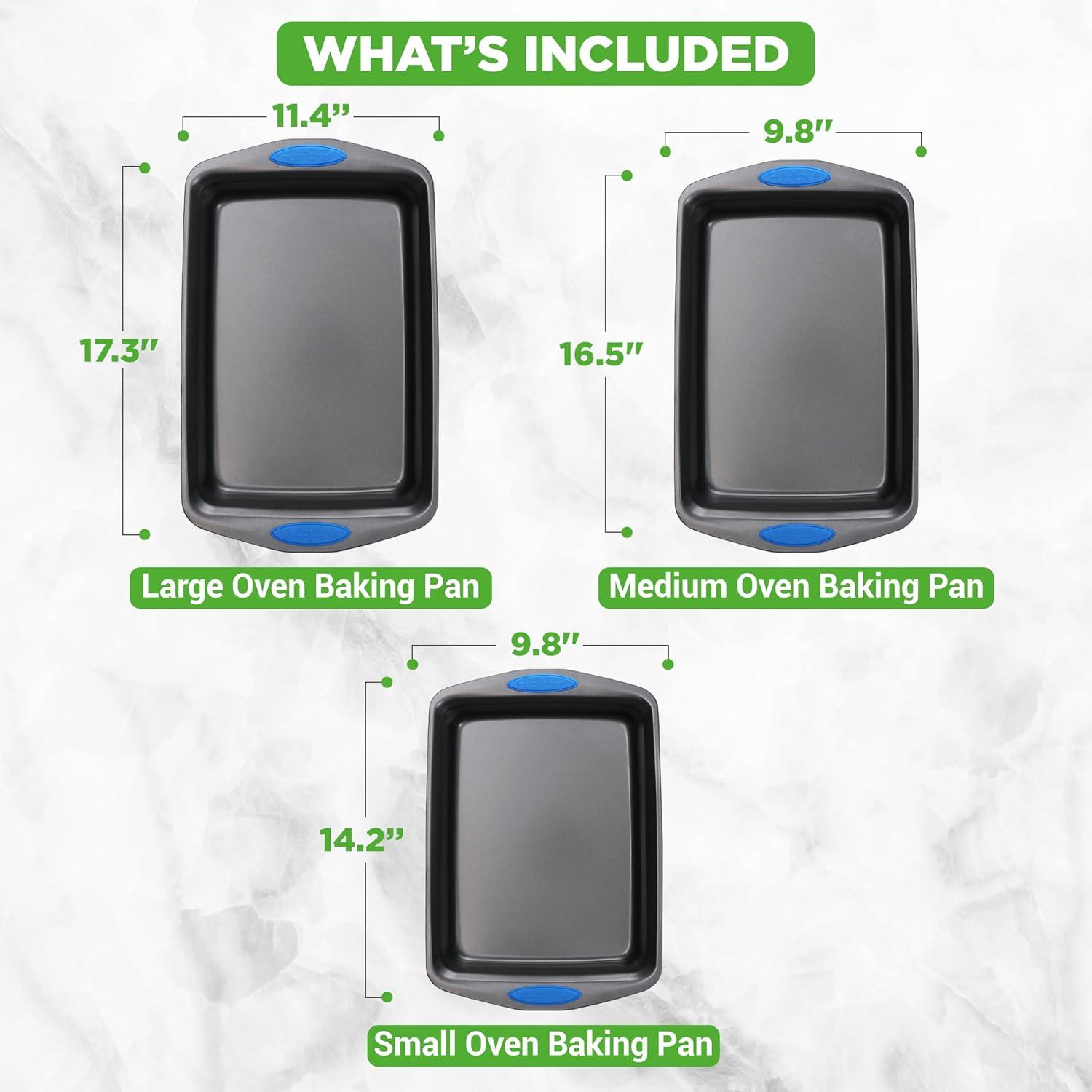 COMFORTABLE AND EASY TO USE – These cookie sheets for baking come with silicone handles, making it easy and safe to handle even when hot. The variety of sizes means you can tackle any baking project, from small batches to big family-sized treats.