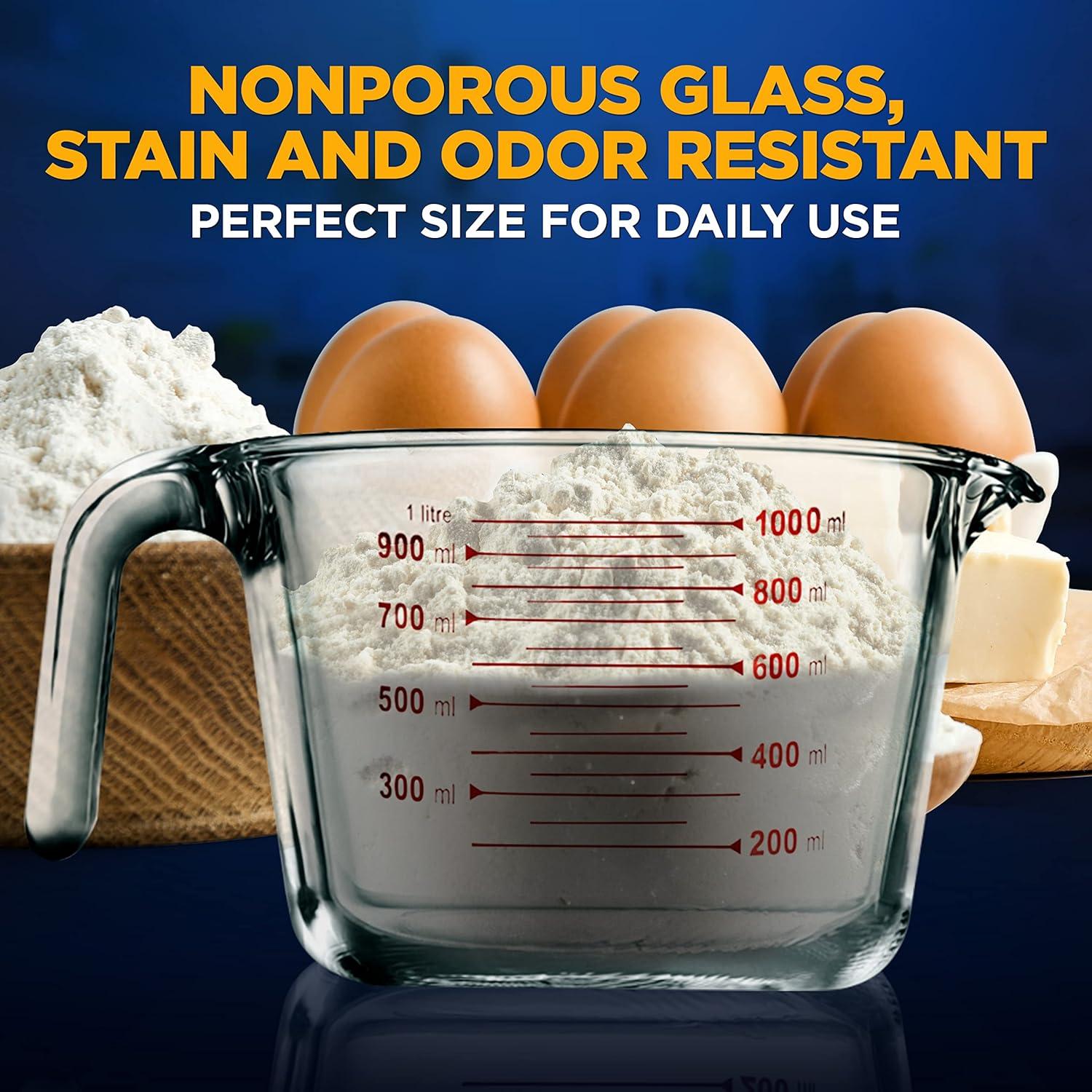 PREMIUM GLASS: These glass measuring cups are crafted of high borosilicate transparent glass & can tolerate rapid temperature changes w/out warping or cracking. It is nonporous and odor-resistant so it won’t absorb stains or smell