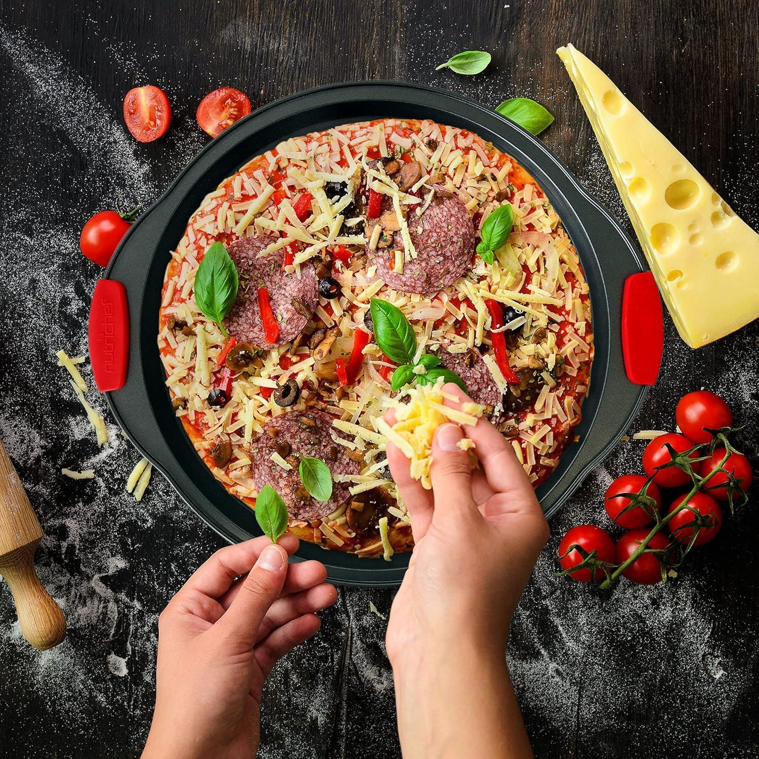 HEAT-RESISTANT AND DURABLE DESIGN – Built to withstand temperatures up to 446°F, this bakeware ensures safe, even cooking. Reinforced grips provide a secure hold and the carbon steel design prevents warping over time.