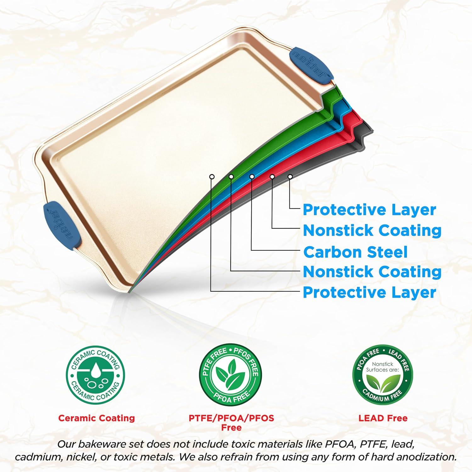 imageNutriChef 6Piece Nonstick Bakeware Set  Premium Carbon Steel Baking Trays wHeatSafe Silicone Handles  Includes Loaf Pan MuffinCupcake Pan Round ampamp Square Roaster Pans Cookie Sheet  NCSBSG366 Pieces Set