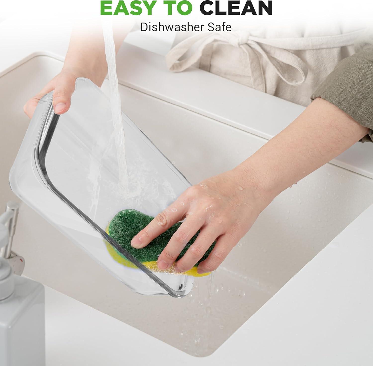 Features: – Rectangular Glass Bakeware Set – High Borosilicate Glass Baking Dish with BPA-Free Lids – Heat-Resistant – Dishwasher Safe – Non-Slip Design – Space Saving Storage – BPA-free and Lead-Free – Stain and Flavor Resistant – Convenient to Use & Easy to Clean – Friendly to the Environment and Free of Chemicals – Safe for Oven, Microwave, Freezer, and Fridge – Baking Dish for Casseroles, Lasagna, Leftovers, Cooking What's in the Box: – 4 Sets of Rectangular Glass Bakeware Set Technical Specs: – Construction Material: High-Quality Glass – Container Style: Rectangle – Lid Style: BPA-free PE lid – Capacity: 31.03oz + 55.17oz +75.86oz + 103.45oz – Maximum Temperature: 520? (Max) , -20?(Min) – 31.03oz Product Dimensions (L x W x H): 8.27'' x5.51'' x 2.09'' -inches (With Lid) – 31.03oz Product Dimensions (L x W x H): 8.07'' x 5.31'' x 1.89'' -inches (Without Lid) – 55.17oz Product Dimensions (L x W x H): 11.81'' x 7.13'' x 2.20'' -inches (With Lid) – 55.17oz Product Dimensions (L x W x H): 11.61'' x 6.93'' x 2.00'' -inches (Without Lid) – 75.86oz Product Dimensions (L x W x H): 13.82'' x8.46'' x 2.24'' -inches (With Lid) – 75.86oz Product Dimensions (L x W x H): 13.62'' x 8.27'' x 2.05'' -inches (Without Lid) – 103.45oz Product Dimensions (L x W x H): 15.67'' x 9.49'' x 2.24'' -inches (With Lid) – 103.45oz Product Dimensions (L x W x H): 15.47'' x9.29'' x 2.05'' -inches (Without Lid)