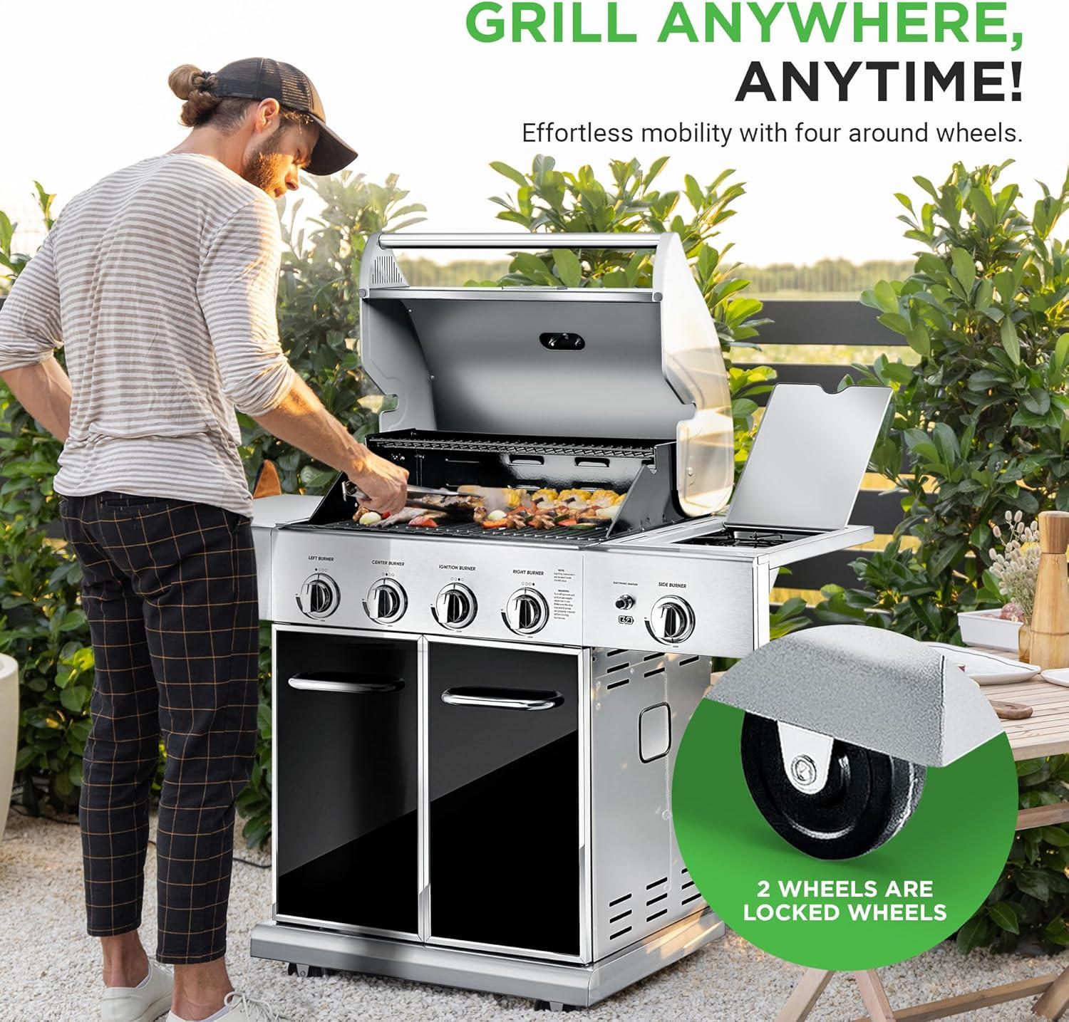 Features: Multi-Functional BBQ Grill Ideal for Outdoor Use Durable Steel and Anti-Rust Heavy-duty and Solid Construction With Wheels on the Bottom to Help Transport when Needed Attached Steel Firebox Helps Reduce Smoking Sleek and Stylish Black Design Made of Durable Steel, Anti-Rust Side Shelf that Holds Food and Tools for Added Convenience With Fire Box, Cooking Chamber, Chimney, Front Shelf and Adjustable Damper Lid-mounted Temperature Gauge Suitable for Bake. Braise, Smoke, Roast, and Grill Removable Charcoal Pan Cool-touch Spring Handles Three “S” Hooks Free Up more Room for Tools Double Split Cooking Grates What's in the Box: (1) Set of Charcoal BBQ Grill Technical Specs: Construction Material: Steel Cover Size: 21.9'' x 18.3'' x 7.9 -inches Firebowl: 2.11’’ x 1.77’’ x 7.87” x 0.031” -inches Side Bowl: 10.63’’ x 9.84’’ x 0.031” inches Front Sheet: 17.7'' x 8.7'' -inches Cooking Area:1.85’’ x 1.73” -inches Cooking Height: 31.9'' -inches Grill Grid:17.32’’ x 9.25’’ x 0.197’’ x 0.197’’ -inches (Chrome Plated) Charcoal Grid:19.70’’ x 11.81’’ x 0.20’’ x 0.16”-inches (Painting) Warming Grid: (18.90’’ x 9.65’’) x 0.197” -inches (Chrome Plated) Bottom Grid:18.50’’ x 14.97’’ x 0.157’’ x 0.157” -inches (Painting) Feet Size: 1.26’’ x 0.028” (Powder Painting) Wheel Diameter: 6.7'' -inches Product Dimensions: 36.6'' x 27.6'' x 50.4'' -inches Sold as: 1 Weight: 0 lbs.