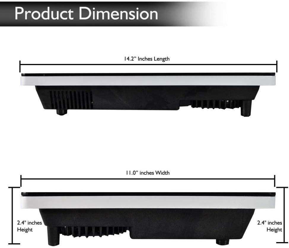 NutriChef Double Induction Cooktop – Portable 120V Digital Ceramic Dual Burner w/ Kids Safety Lock – Works with Flat Cast Iron Pan,1800 Watt,Touch Sensor Control, 12 Controls – PKSTIND48, Black(Double)
