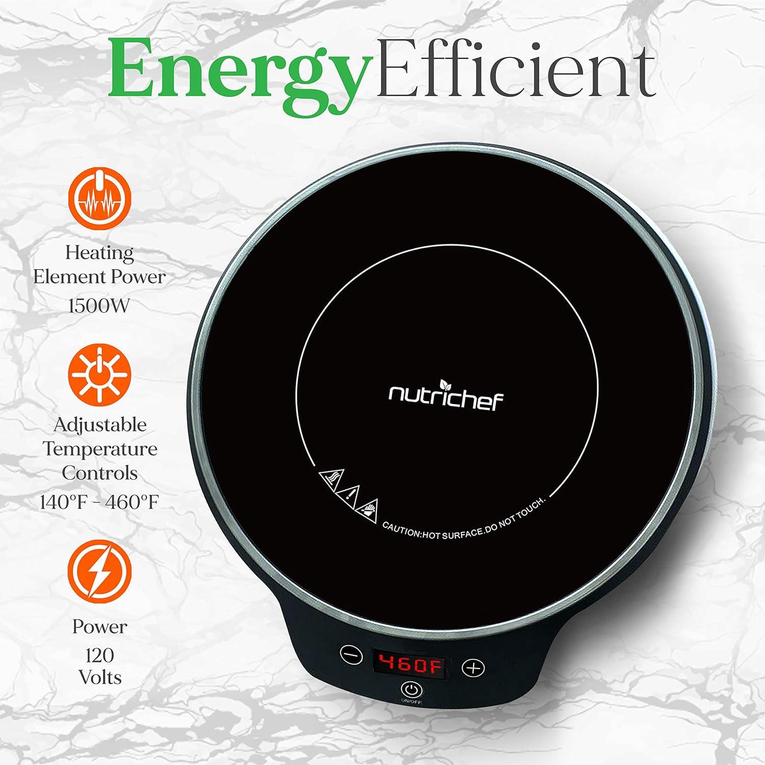 nutrichef Electric Griddle Hot Plate Cooktop – 800W 8″ Pan Style Crepe Maker Hot Plate w/ON/Off Switch, Nonstick Coating, Automatic Temperature Control, Plug-in Operation for Kitchen and Countertop
