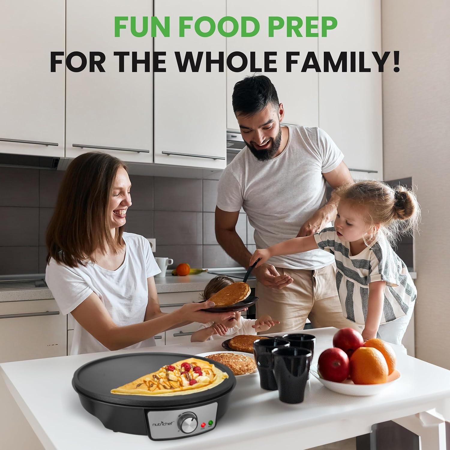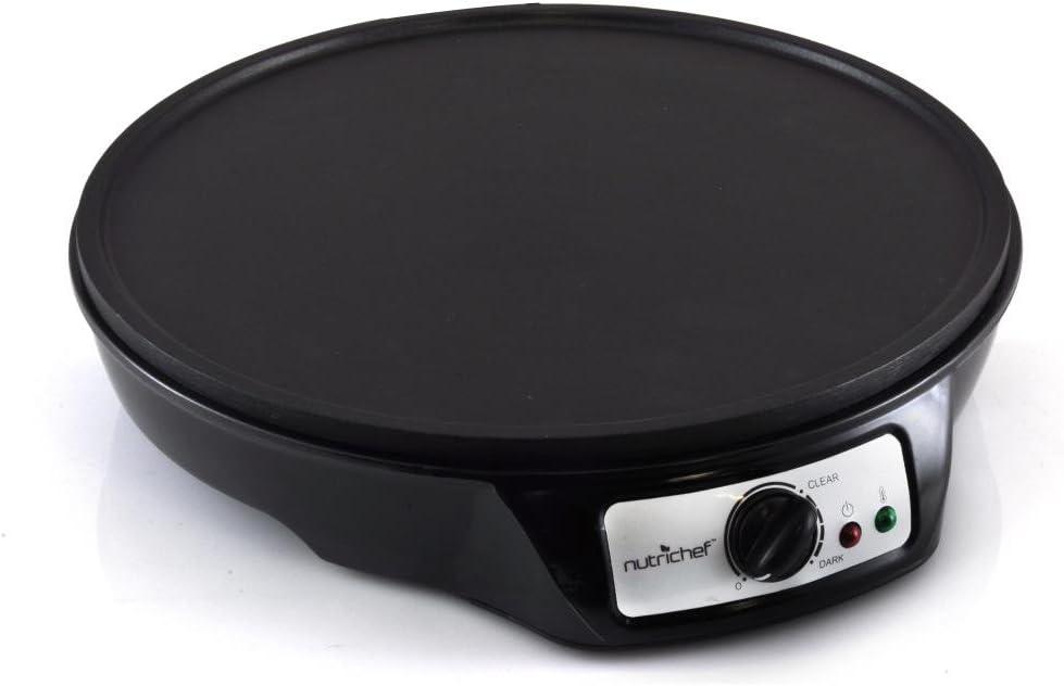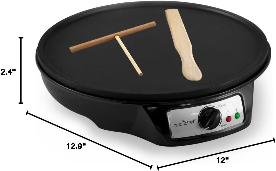 Nutrichef Electric Crepe Maker Pan & Griddle - 12 Inch Nonstick Cooktop, LED Indicators & Adjustable Temperature Control, Includes Spatula, Batter Spreader, Cooks Crepes, Roti & Pancakes