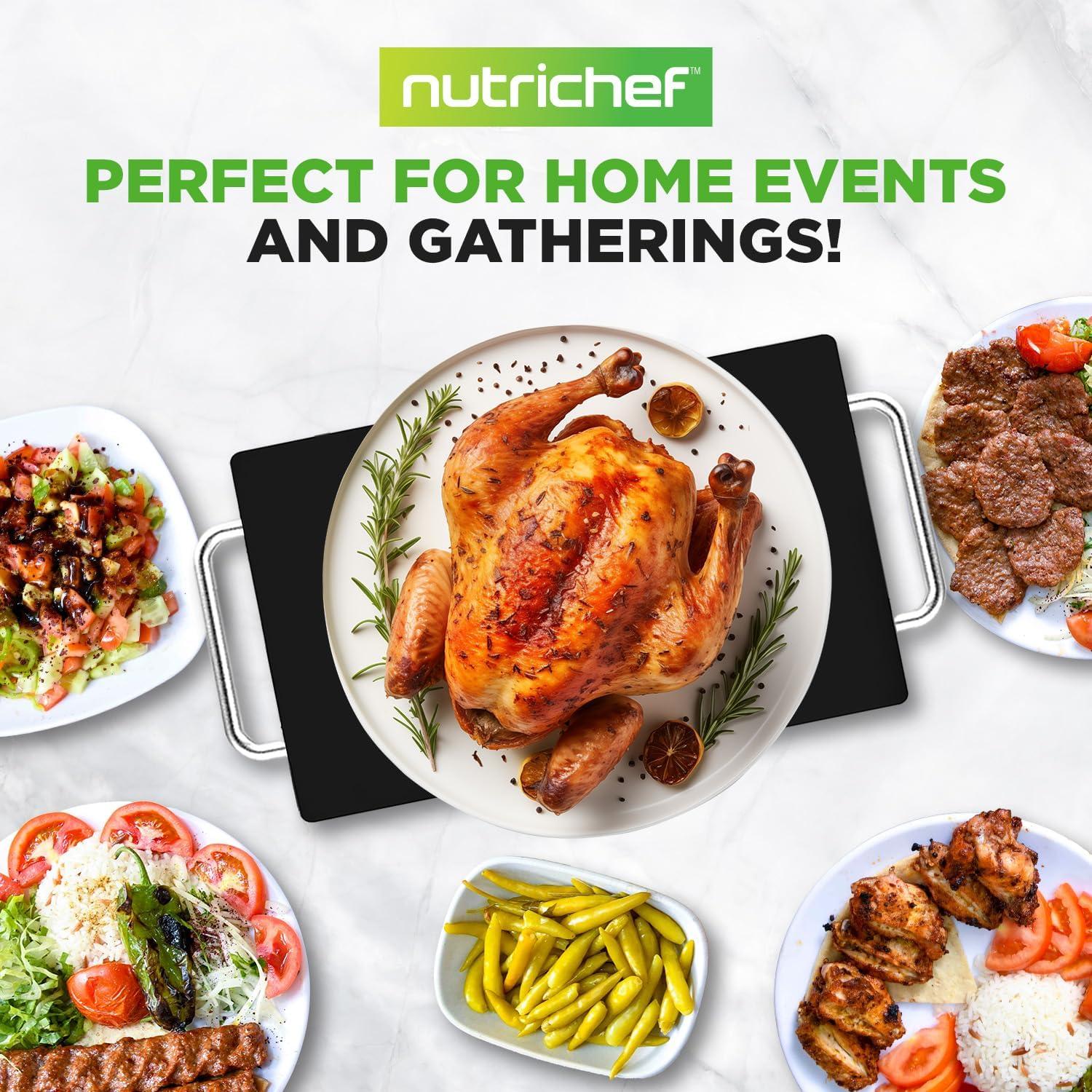 KEEPS FOOD WARM: The NutriChef Electric Hot Plate provides even and thorough food warming ability. Heats your food up to 203°F. It can be used w/ baking sheets and casserole dishes. Perfect for buffets, banquets, home parties