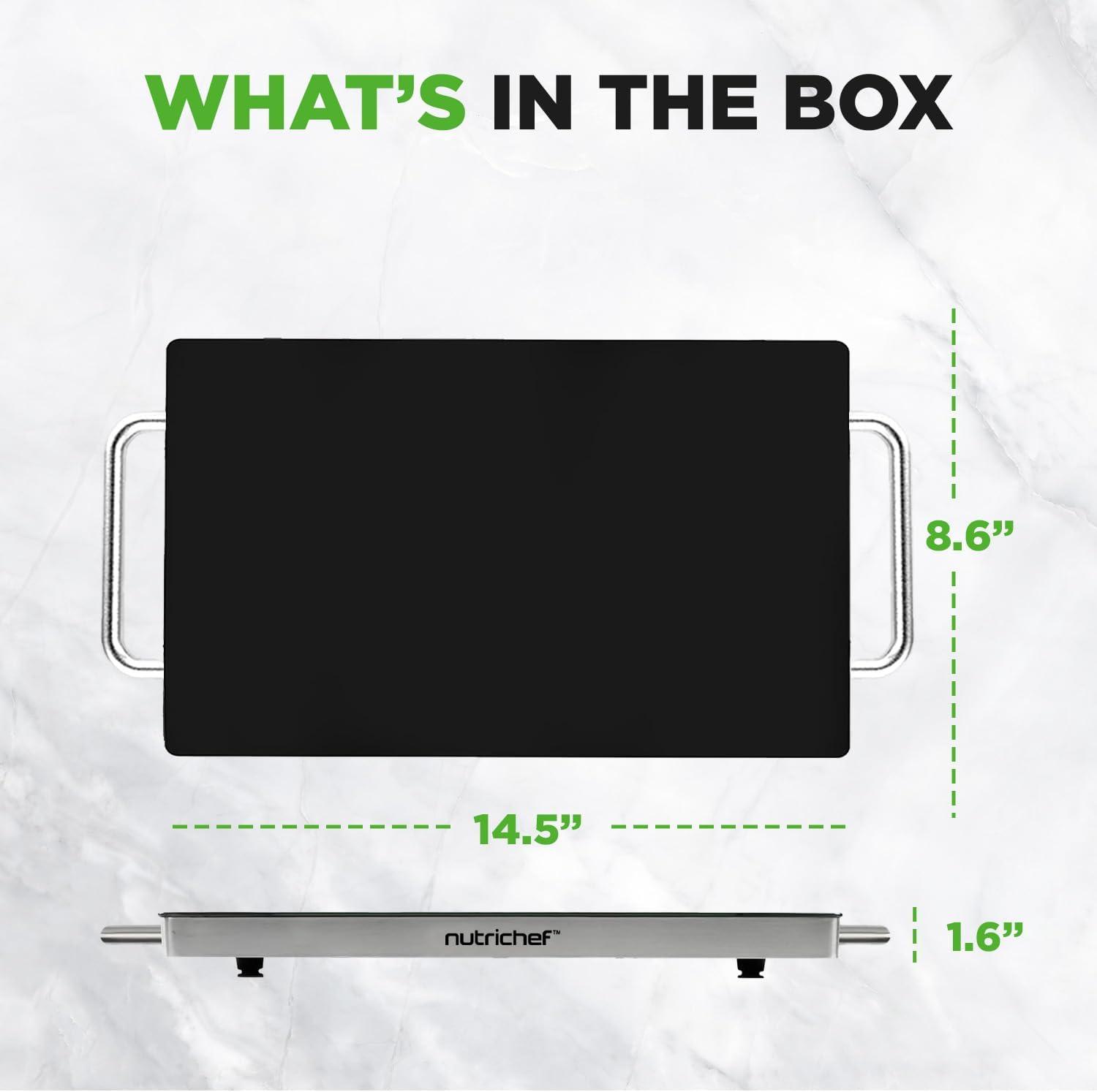 Nutrichef Electric Hot Plate Tray Dish Warmer with Black Glass Top | Ideal for Home, Buffet, Parties, Kitchen & Dinners | Portable & Perfect for Tables or Countertops | 14.5” L x 8.6” W(14.5” x 8.6” Inches)