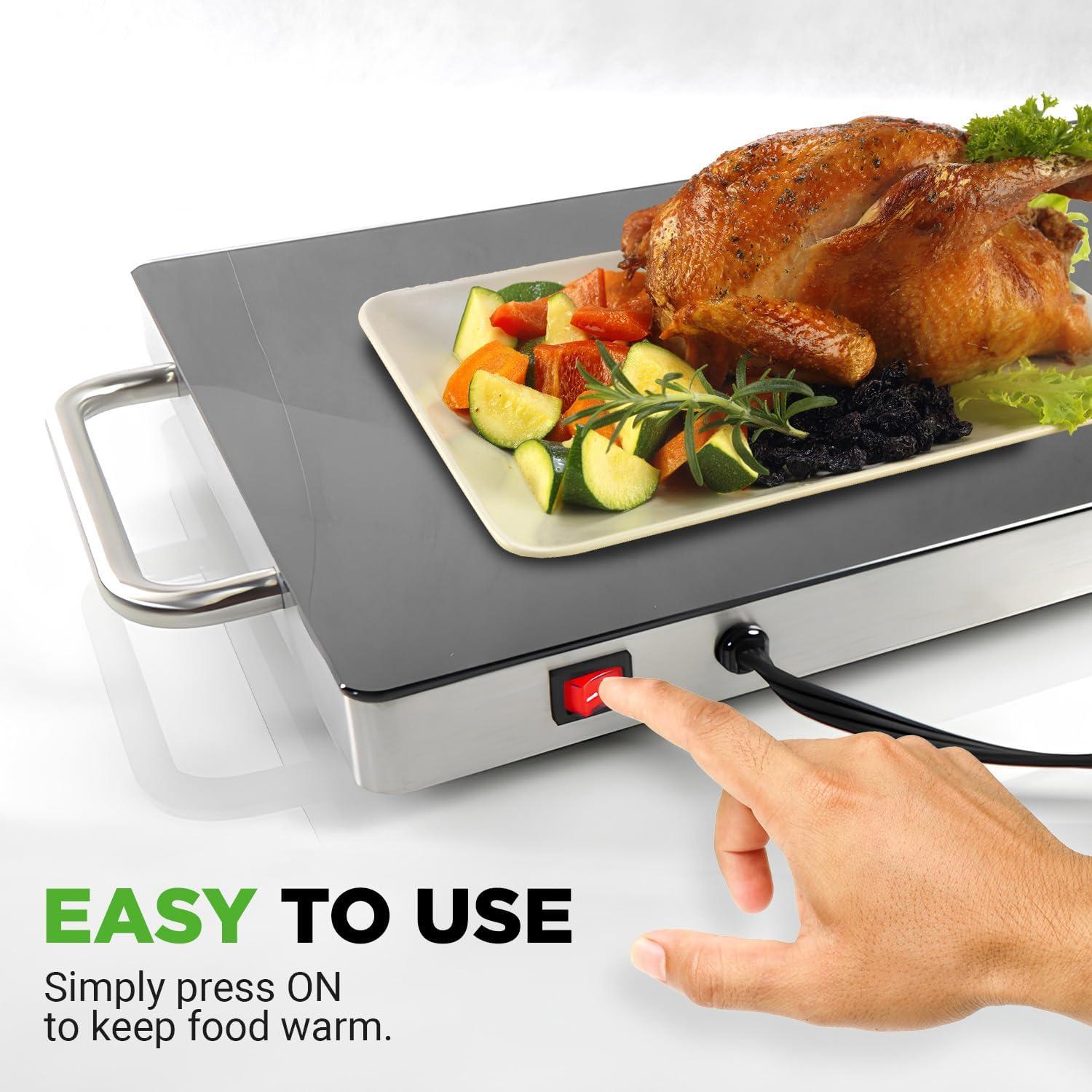 KEEPS FOOD WARM: The NutriChef Electric Hot Plate provides even and thorough food warming ability. Heats your food up to 203°F. It can be used w/ baking sheets and casserole dishes. Perfect for buffets, banquets, home parties