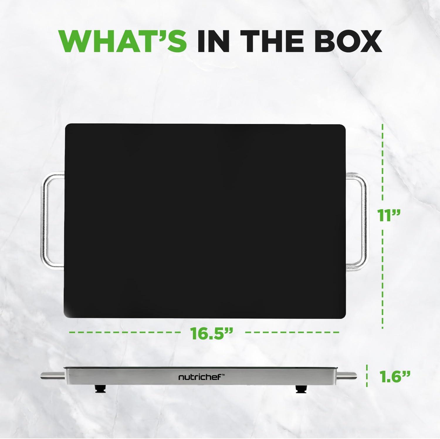 Nutrichef Electric Hot Plate Tray Dish Warmer with Black Glass Top | Ideal for Home, Buffet, Parties, Kitchen & Dinners | Portable & Perfect for Tables or Countertops | 14.5'' L x 8.6'' W(Size 16.5 x 11 Inches)
