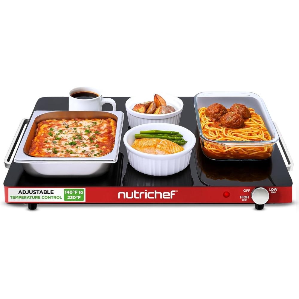 Elevate your dining experience with our Electric Food Warming Tray, the ultimate solution for keeping your meals at the perfect temperature. Boasting a sleek glass surface and a space-saving design, this hot server plate integrates seamlessly into any setting – from bustling buffets and restaurants to intimate home dinners and lively parties. Crafted with high-quality cold-rolled sheet construction, our tray is not only durable but also energy-efficient, ensuring your dishes remain warm and ready to serve with minimal power consumption. Designed with your convenience in mind, it features an adjustable temperature control ranging from 140°F to 230°F, allowing you to maintain the ideal heat for everything from appetizers to main courses and side dishes. The high-powered heating element ensures even heat distribution, while the rotary control temperature setting and intuitive controls make it user-friendly. Safety is paramount, which is why our tray comes with overheat protection and non-slip feet for stability on any countertop. Cleaning is a breeze thanks to the easy-to-clean and stain-resistant surface, and the convenient cool-touch carry handles make transportation effortless. Its ultra-thin and sleek design does not compromise on space, making it perfect for any occasion. Plus, with power and temperature indicator lights, you're always in control. Whether it’s a casual gathering or a grand event, our Electric Food Warming Tray ensures your culinary creations are served just the way they should be – warm and delicious.
