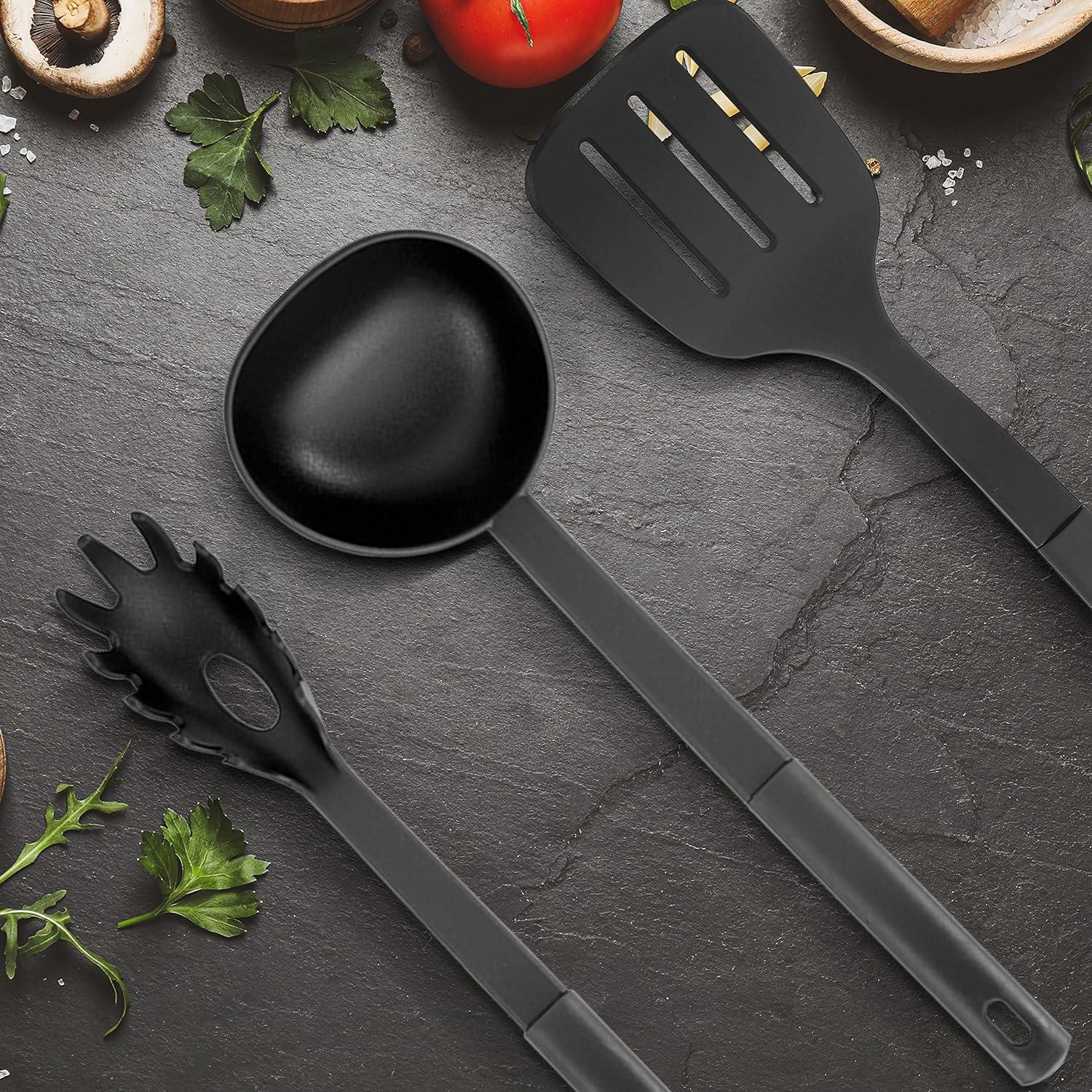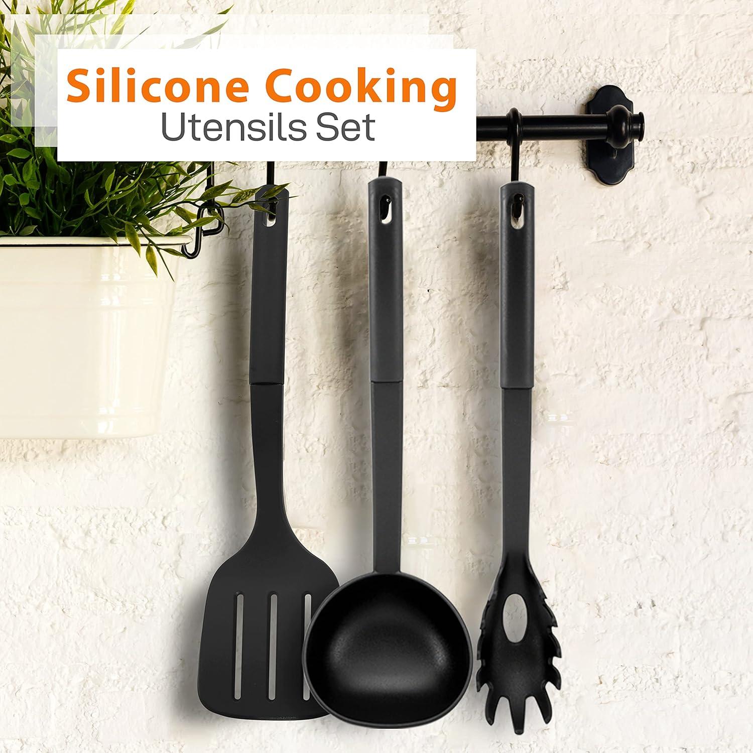 Features: – Silicone Cooking Utensils Set – Heat-Resistant Kitchen Tool Utensils – Food-Grade Safe – Flexible but Sturdy – Environmentally Friendly Construction – Easy to Clean What's in the Box: – Soup Ladle – Pasta Fork – Spatula Technical Specs: – Construction Materials: PP+PPA – Heat Resistance:-86?/-30? to 230?/110? – Soup Ladle Size (L x W x H): 11'' x 3.66'' x 3.46'' -inches – Pasta Fork Size (L x W x H): 12.6'' x 2.36'' x 2.44'' -inches – Spatula Size (L x W x H): 12.6'' x 3.74'' x 2.83'' -inches