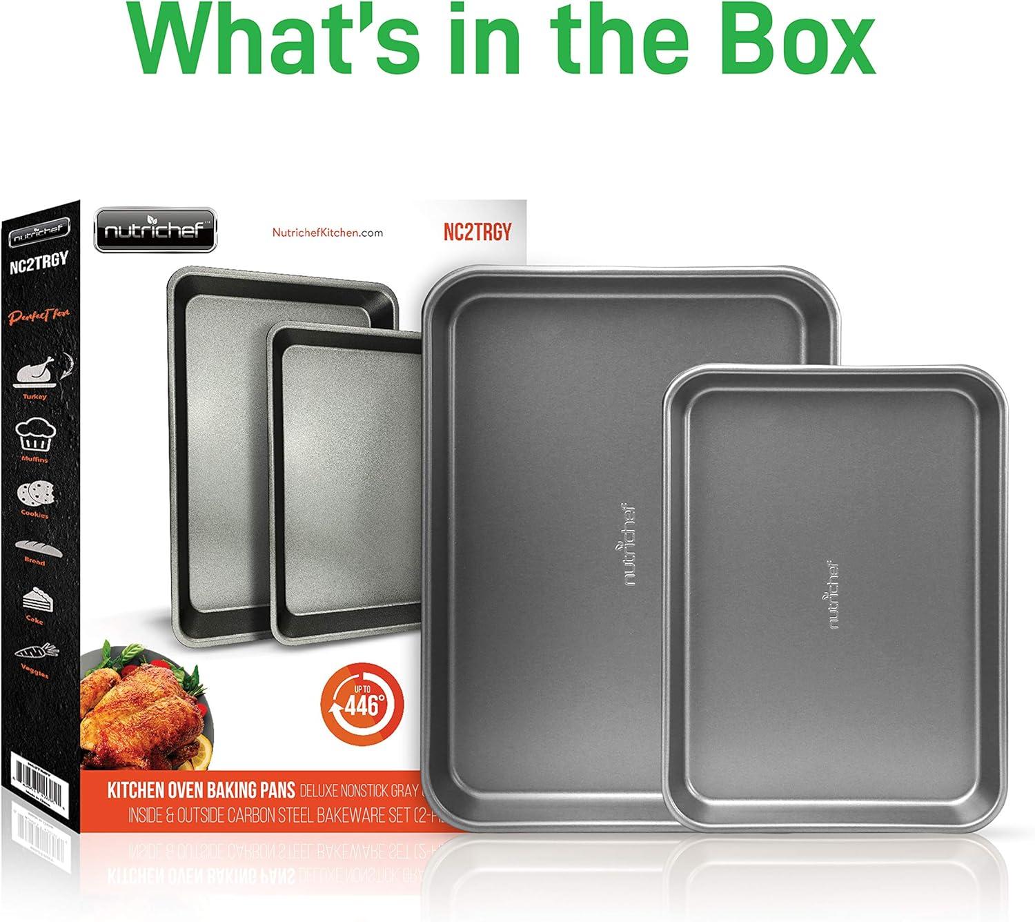 imageNutriChef NonStick Cookie Sheet Baking Pans 2Piece Oven Baking Trays w Superior Nonstick Coating  15quot x 11quot ampamp 13quot x 9quot Sizes for Convenient Roasting ampamp Baking  Dishwasher SafeGray