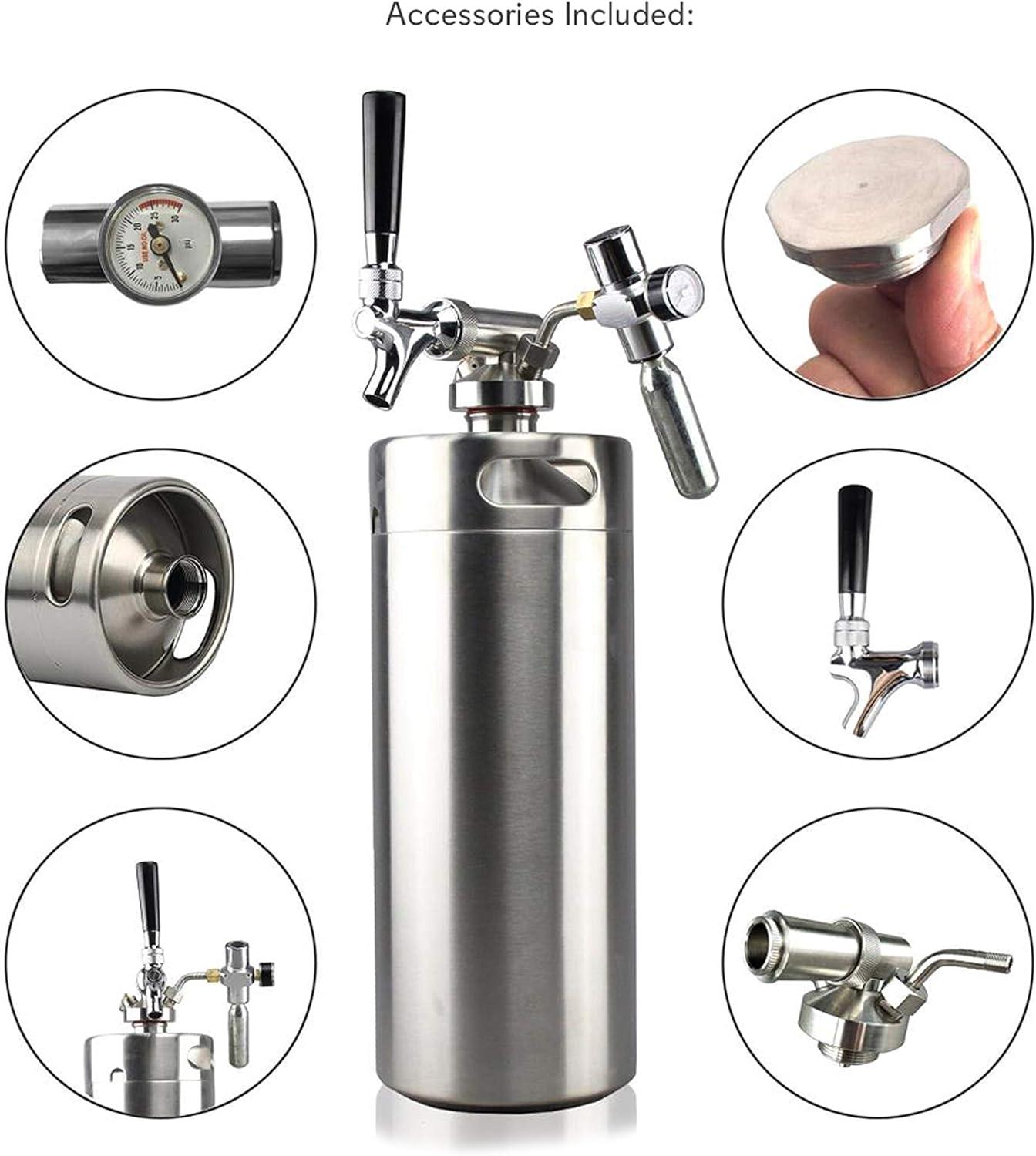 Homebrew Mini Keg – Stainless Steel CO2 Home Keg Dispenser System (128 oz.)