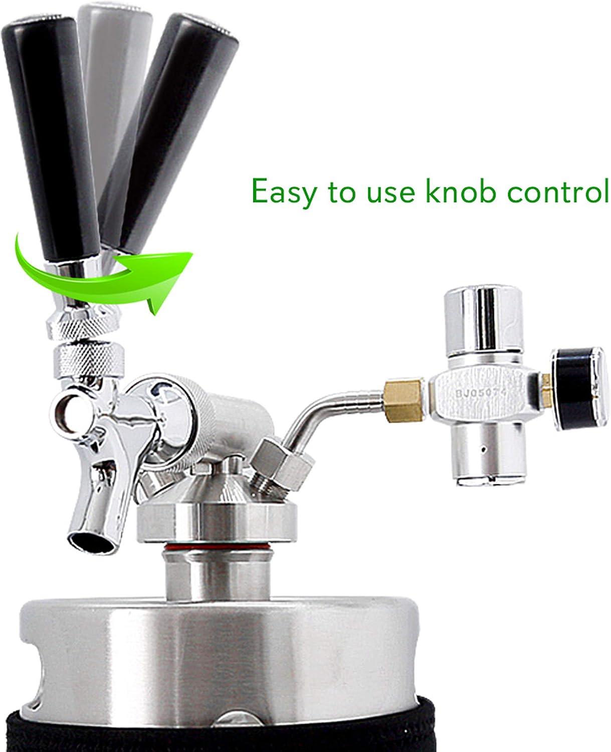ADJUSTABLE REGULATOR: You can monitor the current PSI of this keg dispenser system through the regulator gauge and you can also fine tune the pressure by rotating the adjustment knob. Add the insulator sleeve to keep beverages cold