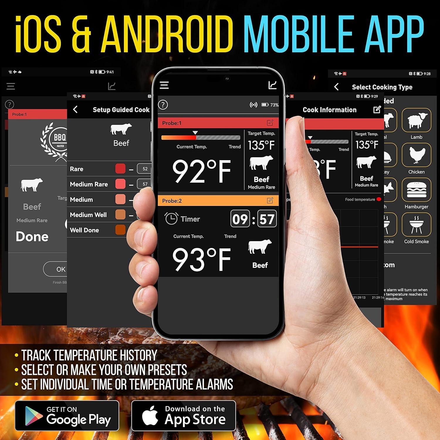 DUAL MONITORING: Remote monitor food temperatures in either Celsius or Fahrenheit and get alerts for multi meats. Save pro cooking presets for your favorite kitchen luxury steak recipes. Set each individual probe separately adjustable in the app