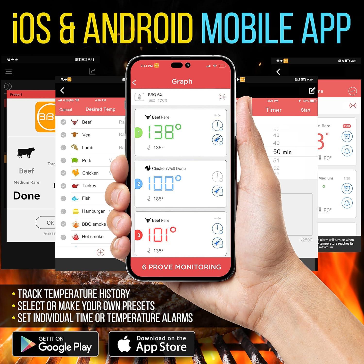 ADD UP TO 6 PROBES: The Smart Bluetooth BBQ Grill Thermometer allows you to add up to 6 probes for accurate & reliable temp readouts. Safely leave probes inside any oven or grill for the entire cook duration. Can withstand temperatures of up to 572°F