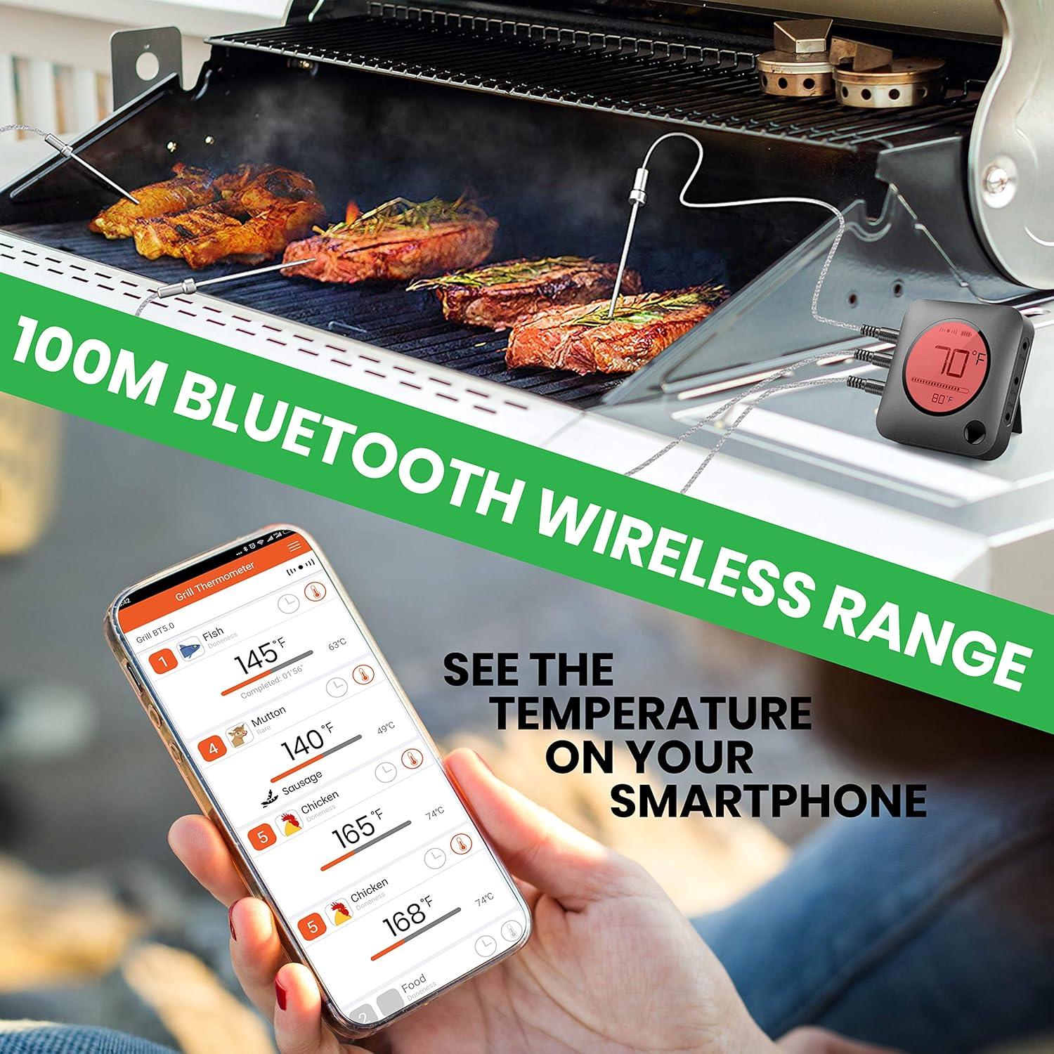 ADD UP TO 6 PROBES: The Smart Bluetooth BBQ Grill Thermometer allows you to add up to 6 probes for accurate & reliable temp readouts. Safely leave probes inside any oven or grill for the entire cook duration. Can withstand temperatures of up to 572°F