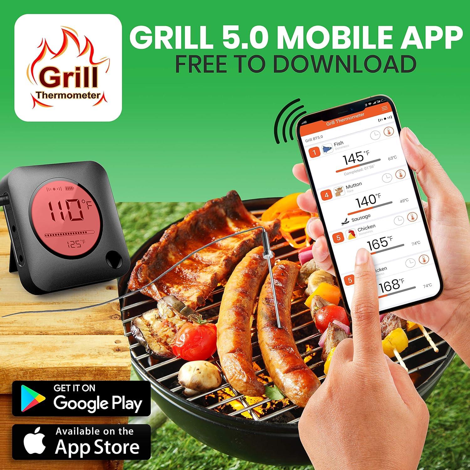 DONE SMARTPHONE ALARM: When the meat reaches the set temperature, your device will send notifications & alarm via the Grill 5.0 app so you can take the meat from gas, charcoal BBQ, smoker or oven timely. Works w/ Apple iPhone / Android smartphone