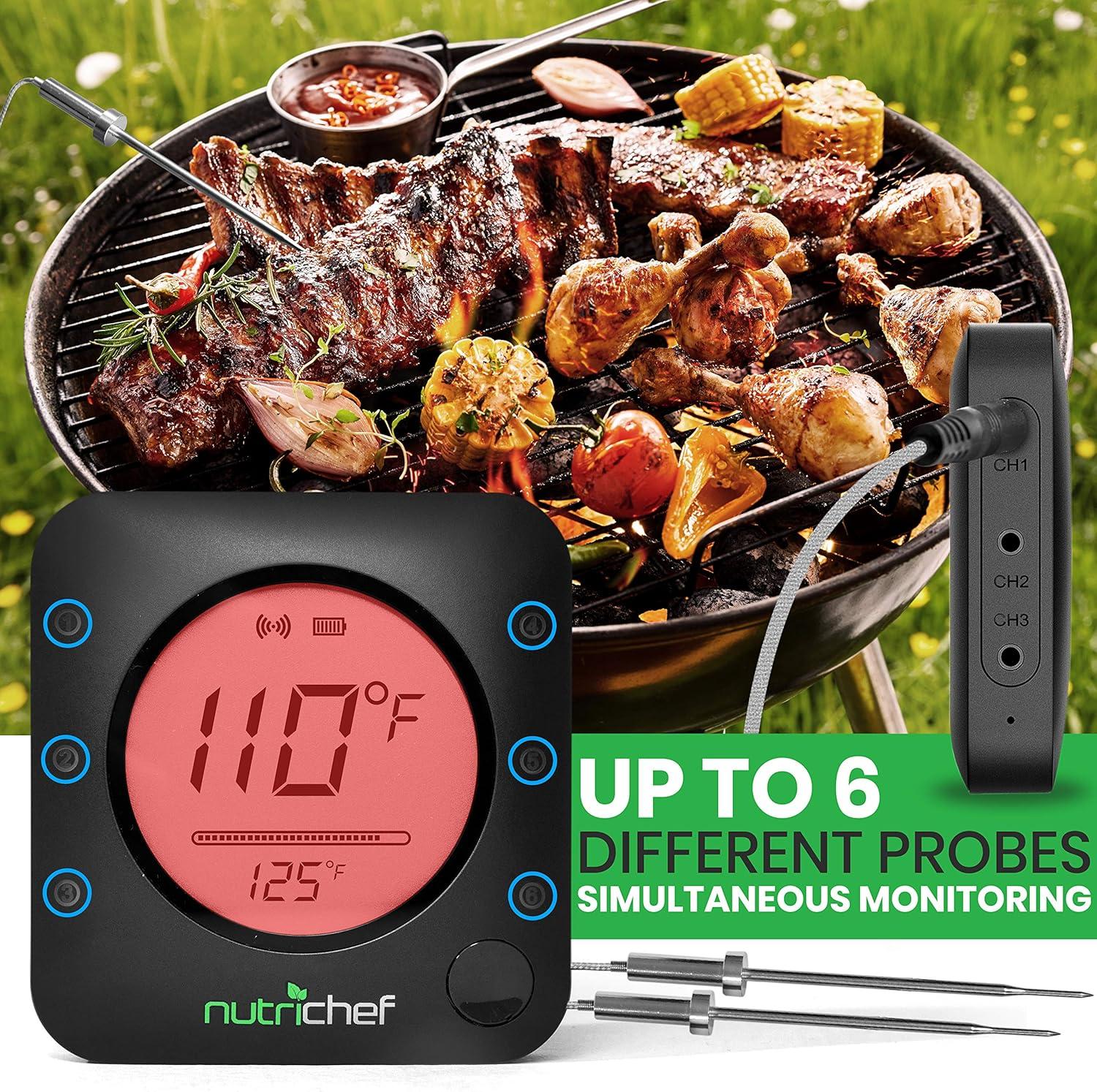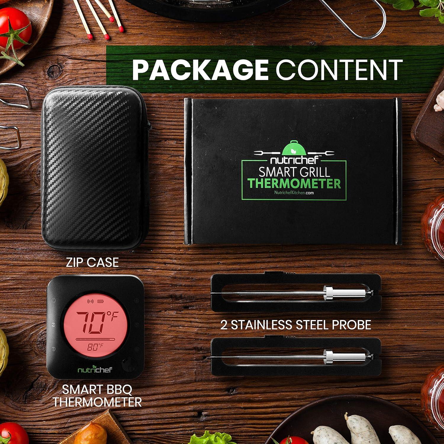 100M WIRELESS RANGE: The NutriChef Wireless Meat Thermometer features bluetooth wireless smart temperature monitoring. Allows you to get an instant notification to your smartphone if you leave the wireless bluetooth range of 100 meters