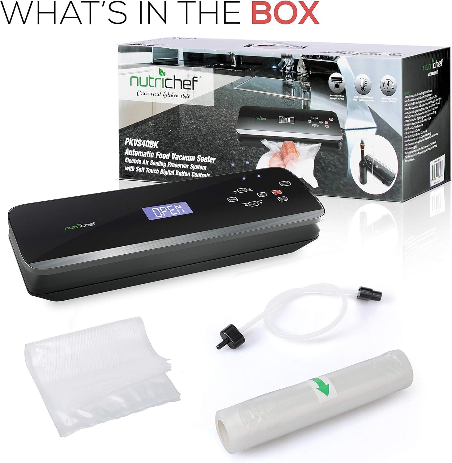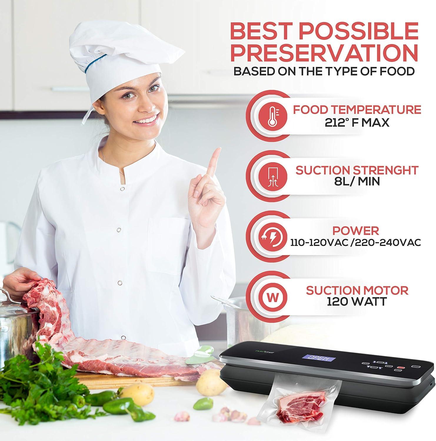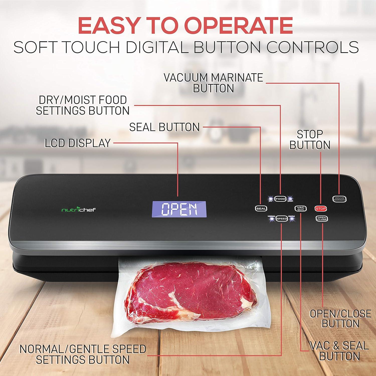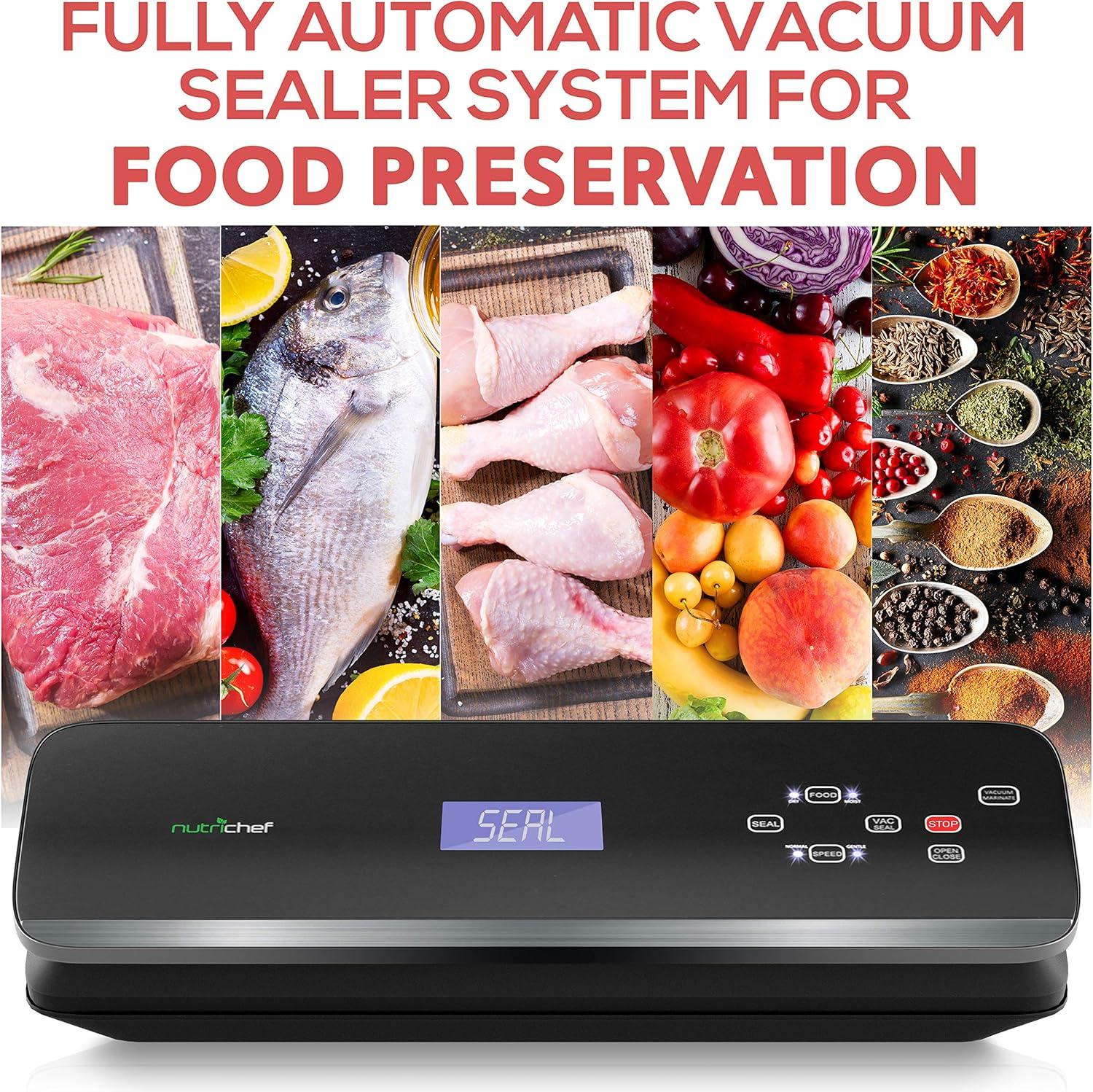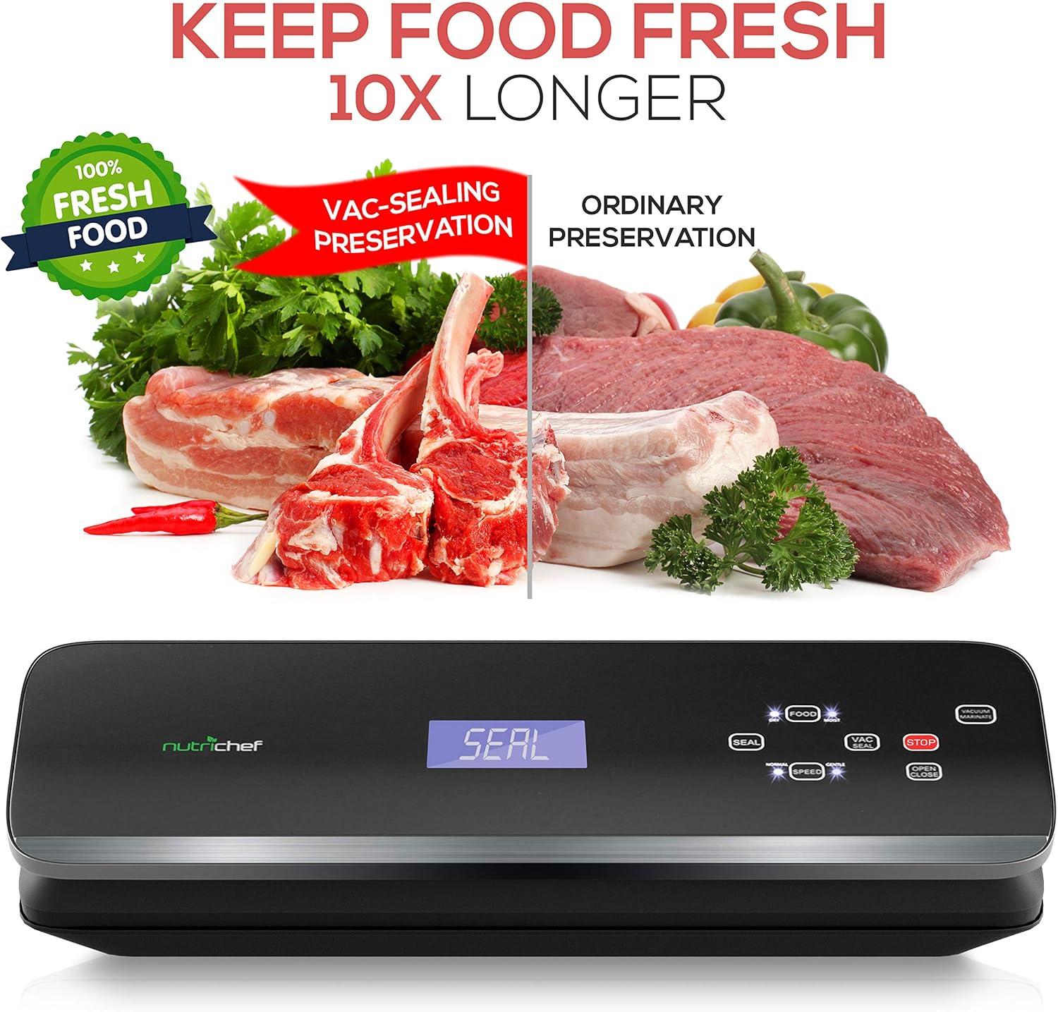 LAB TESTED QUALITY: Vacuum sealers preserve food up to 5 times longer than zipper baggies or containers, basically depending on the type of food. The NutriChef Vacuum Sealer however, was subjected to specific laboratory testing to effectively increase food shelf life.
