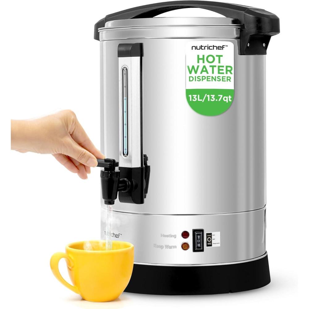 imageNutriChef Water Boiler and Hot Water Dispenser 13L Electric Beverage Dispenser with Safety Lock Lid NonDrip Tap Warm Function Food Grade Stainless Steel Home and Commercial Use 20x11x11 in137 Quarts
