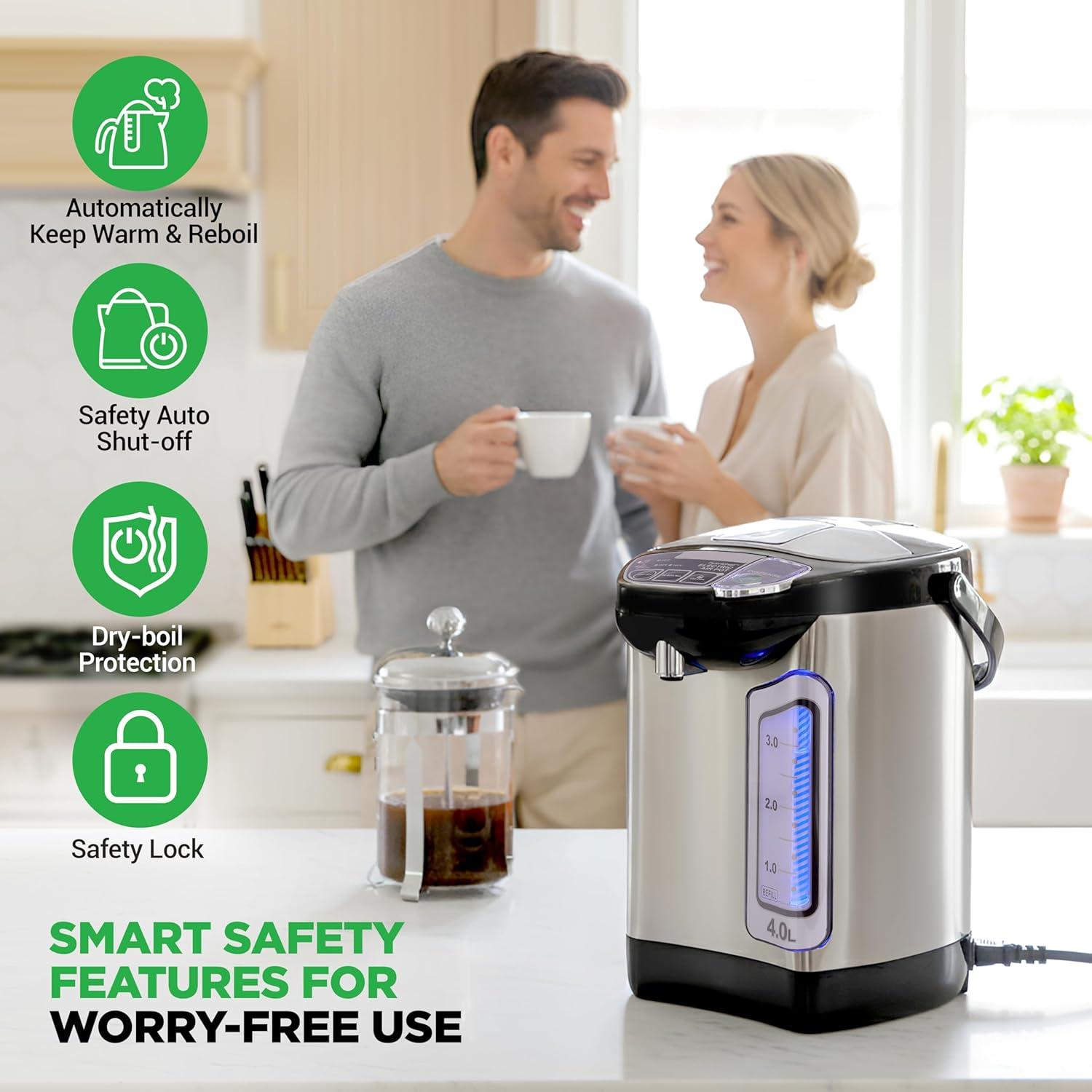 KEEPS DRINKS HOT AND MESS-FREE – The insulated double-layer design and non-drip tap ensure hot beverages stay warm and pouring is easy. With a safety lock lid and overheat protection, this beverage dispenser offers peace of mind for all your events.
