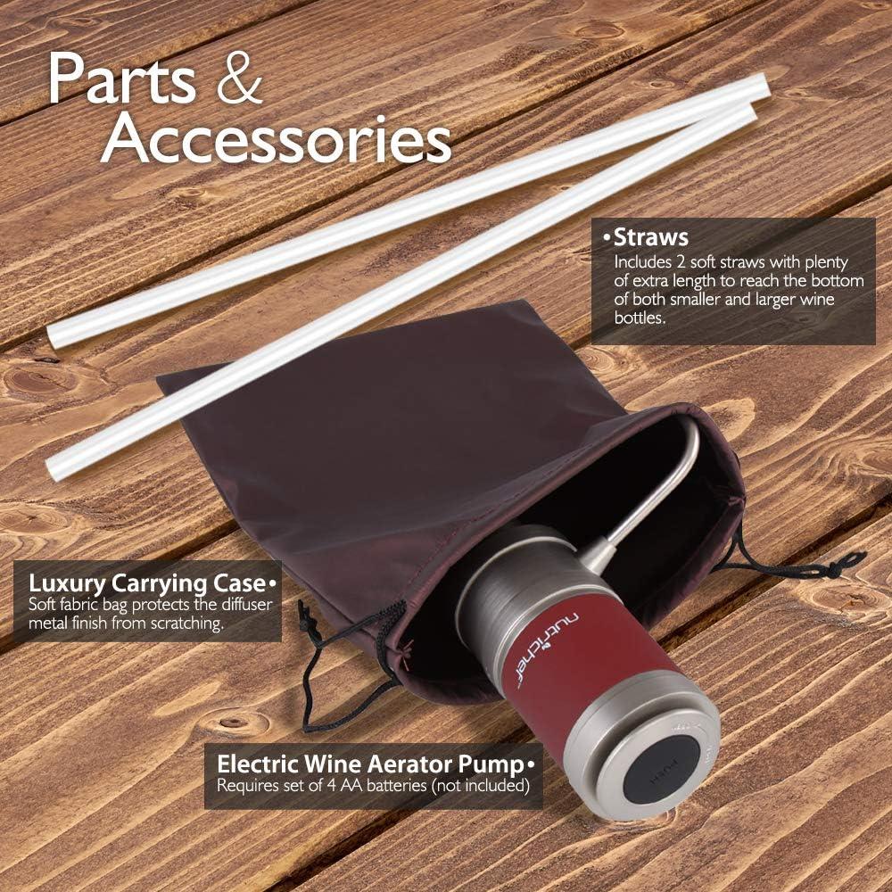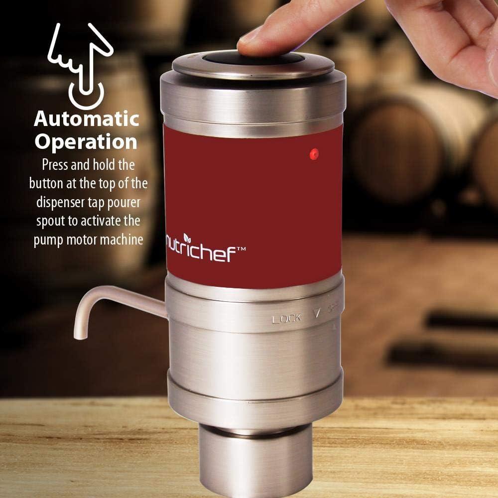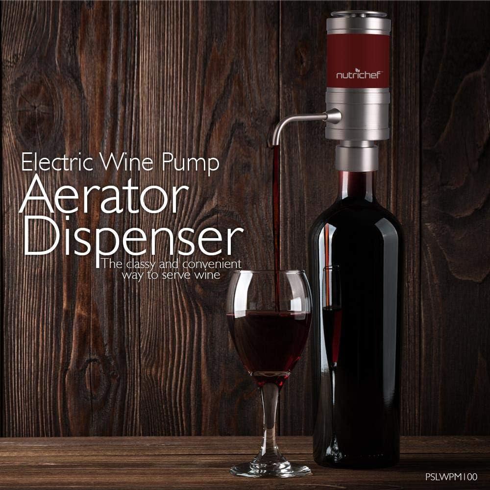 Electric Wine Aerator Dispenser Pump – Portable and Automatic Bottle Breather Tap Machine – Air Decanter Diffuser System for Red and White Wine w/ Unique Metal Pourer Spout – NutriChef PSLWPMP50